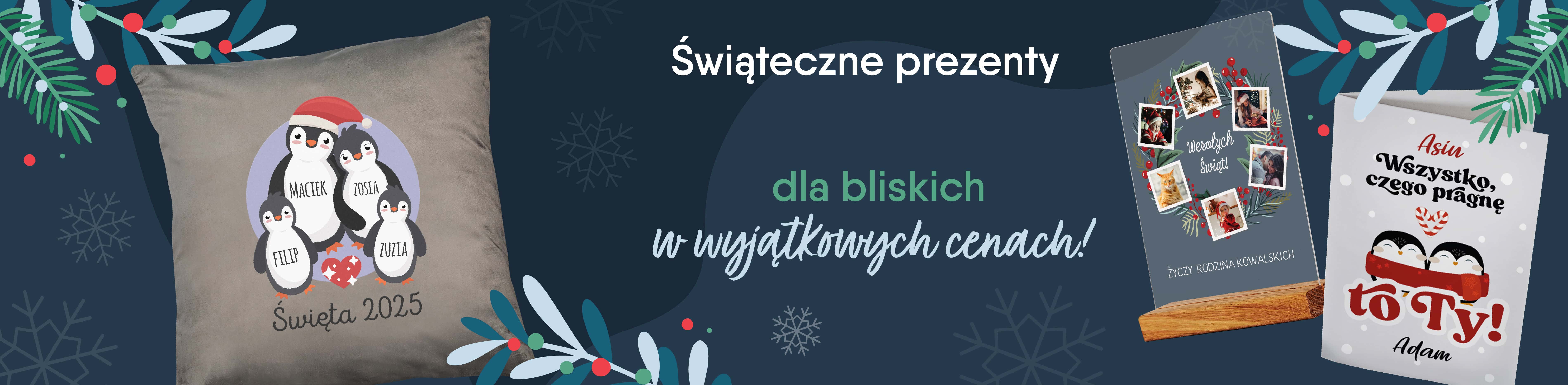 Okazji jest tyle, że właściwie - gdyby się uprzeć - codziennie coś się znajdzie. Nie da się ukryć, wszyscy lubimy świętować, a przy takiej częstotliwości nie zawsze uda się wpaść na odpowiedni pomysł na prezent. Pomijając takie okazje jak Dzień Marchewki albo Światowy Dzień Słonia, wciąż jest ich mnóstwo. Przygotowując nasze personalizowane prezenty, bierzemy pod uwagę wszystkie możliwości, dzięki czemu doskonale dopasujesz swój upominek. Szczególnie wtedy, gdy trzeba ich kupić bardzo dużo, a czas goni. Chyba wszyscy wiemy, że chodzi o zakupowe szaleństwo, które zaczyna się gdzieś pod koniec listopada. Wtedy personalizowane prezenty online okażą się doskonałym rozwiązaniem. U nas znajdziesz wymarzony prezent na święta. Bez stresu i zabiegania wybierzesz coś dla całej rodziny i wszystkich przyjaciół. Zarówno jeśli chodzi o pomysł na prezent ze specjalnymi świątecznymi motywami, jak i te bardziej uniwersalne upominki, które pasują na wiele okazji. Na przykład imieniny, w końcu codziennie ktoś je świętuje, prawda? To dobry moment, by przejrzeć nasze prezenty online i wybrać coś wyjątkowego. W naszej kolekcji są także oryginalne pomysły na prezent urodzinowy, specjalne podarunki na ślub i rocznicę, urocze drobiazgi na chrzest albo komunię, i wiele, wiele innych.Prezenty online dla Twoich bliskich