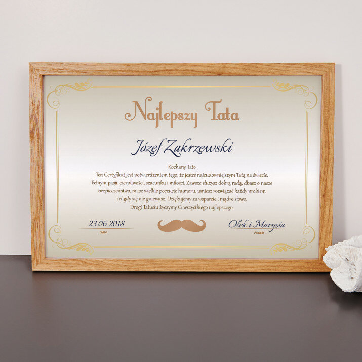 Certyfikat - Najlepszy Tata pokaże Twojemu tacie jak bardzo go kochasz i ile mu zawdzięczasz. Zaskocz go!CERTYFIKAT