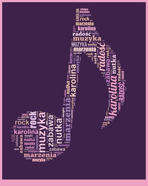 Szukasz prezentu dla kogoś związanego blisko z muzyką? Stwórz dla niego imponujących rozmiarów nutkę zbudowaną z melodyjnych życzeń! Pasjonaci dobrej muzyki z pewnością docenią taki prezent!Chmura Słów