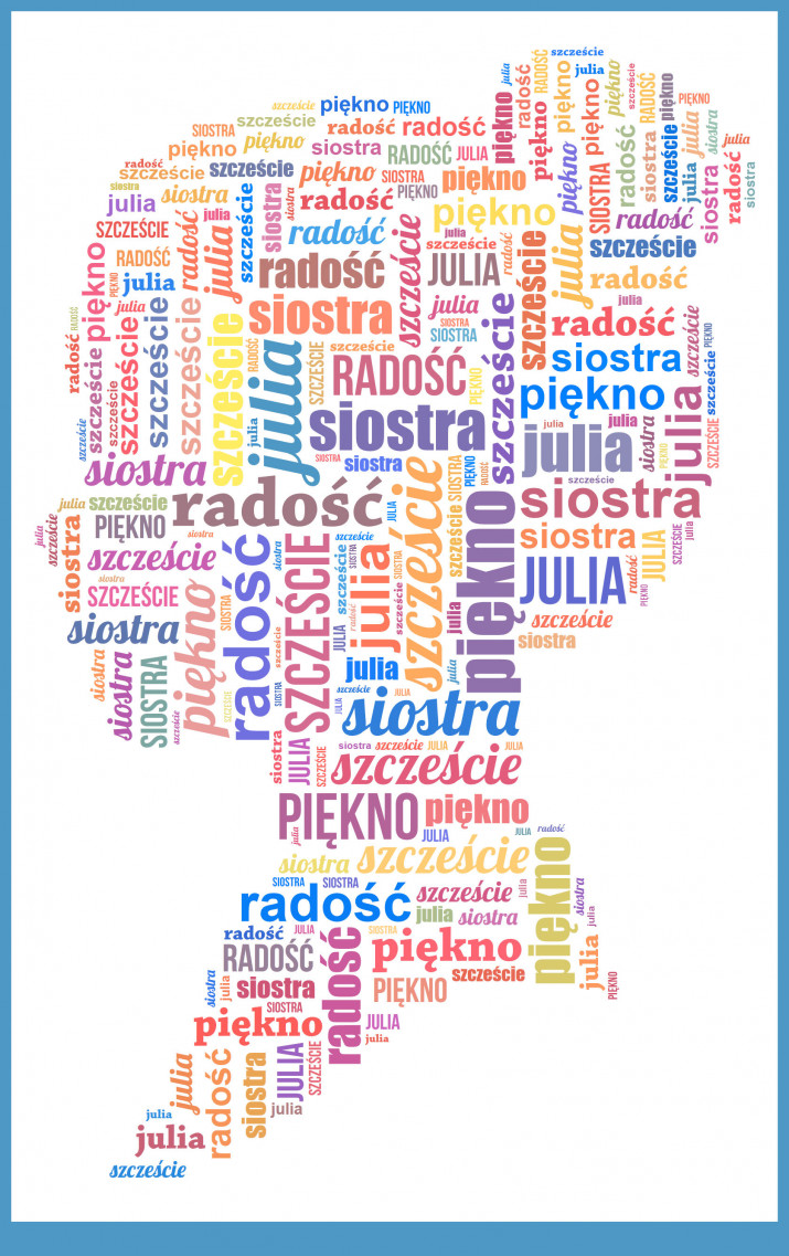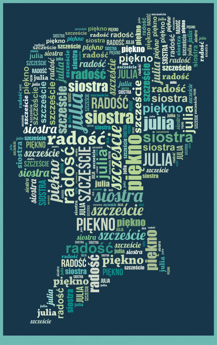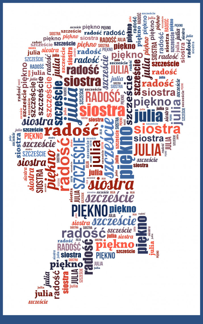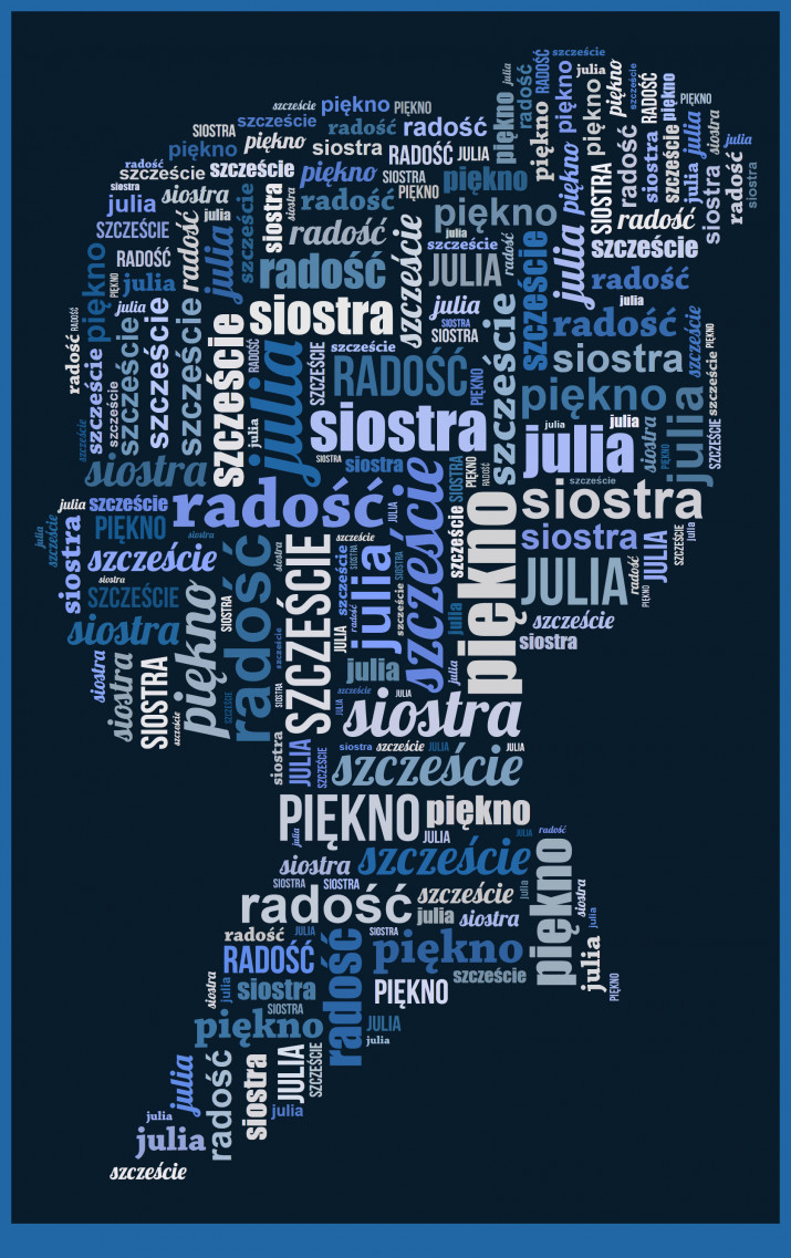 Obraz na płótnie Chmura Słów to wybrany projekt, który składa się z przesłanych przez Ciebie słów. Dzięki takiemu prezentowi możesz przekazać wiele życzeń, albo emocjonalną wiadomość w unikalny sposób. Możliwość personalizacji obrazu pozwala na stworzenie wyjątkowego i jedynego w swoim rodzaju prezentu.Personalizacja