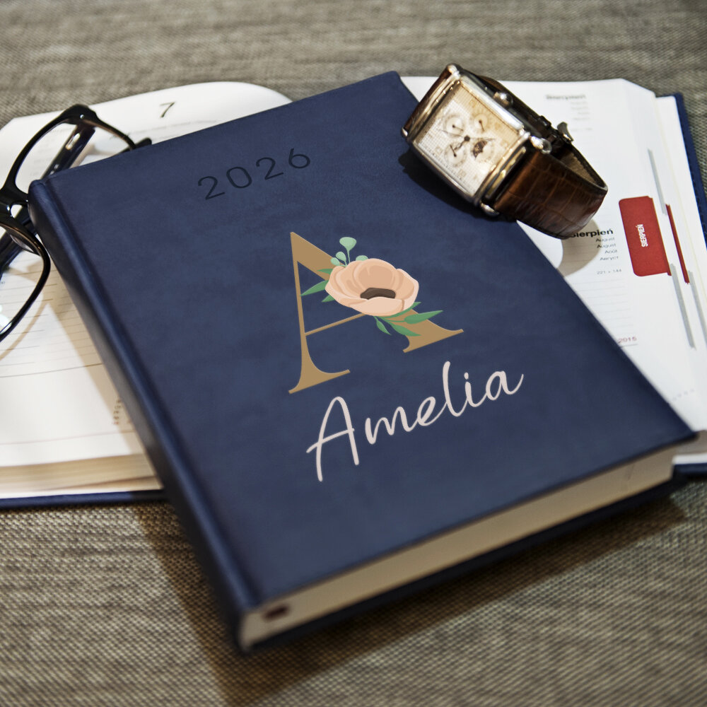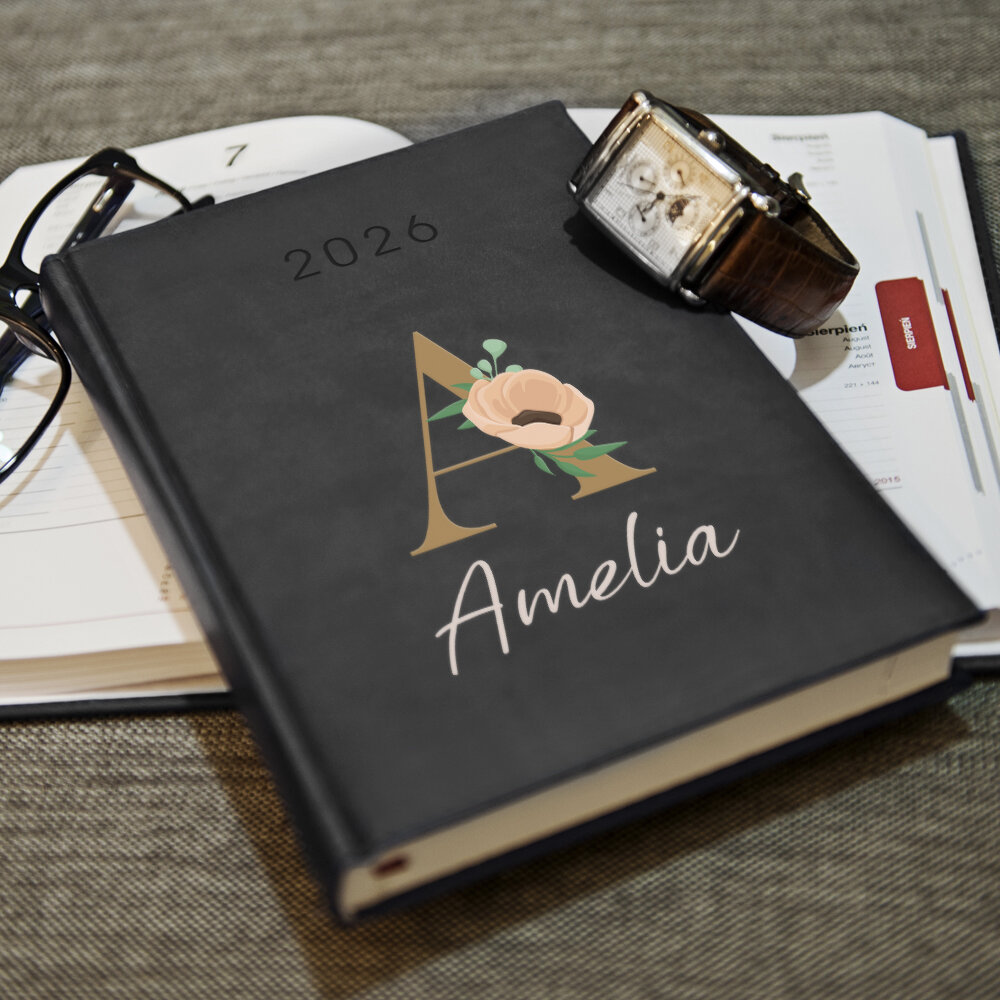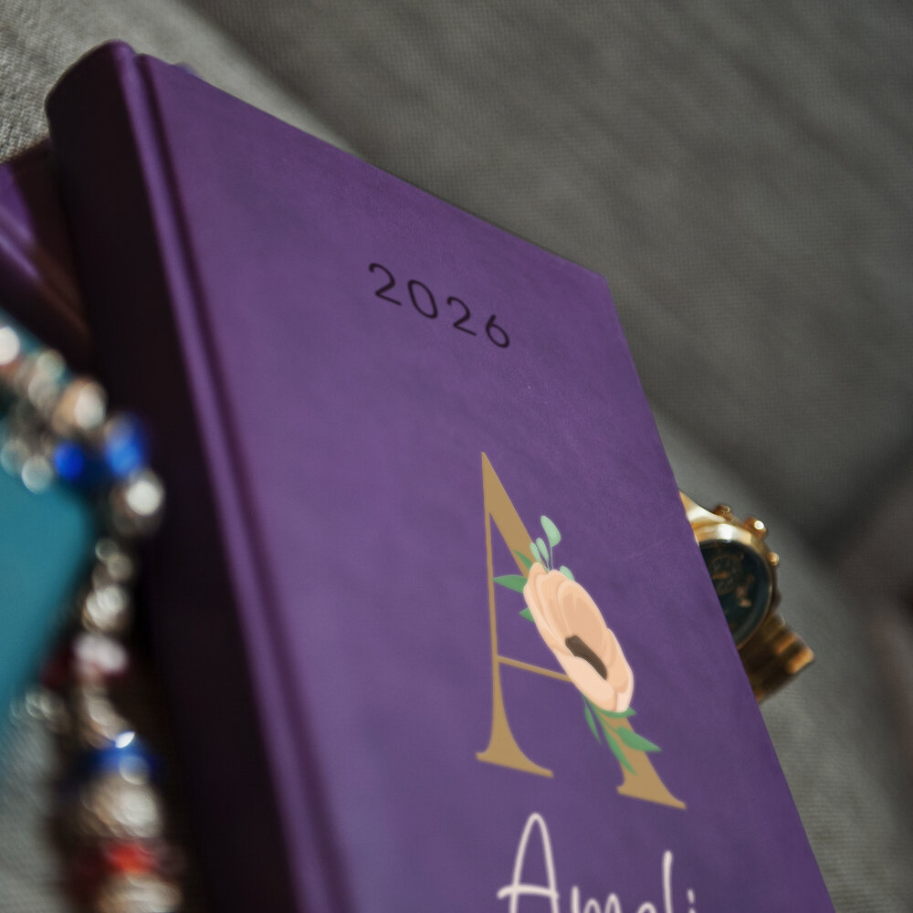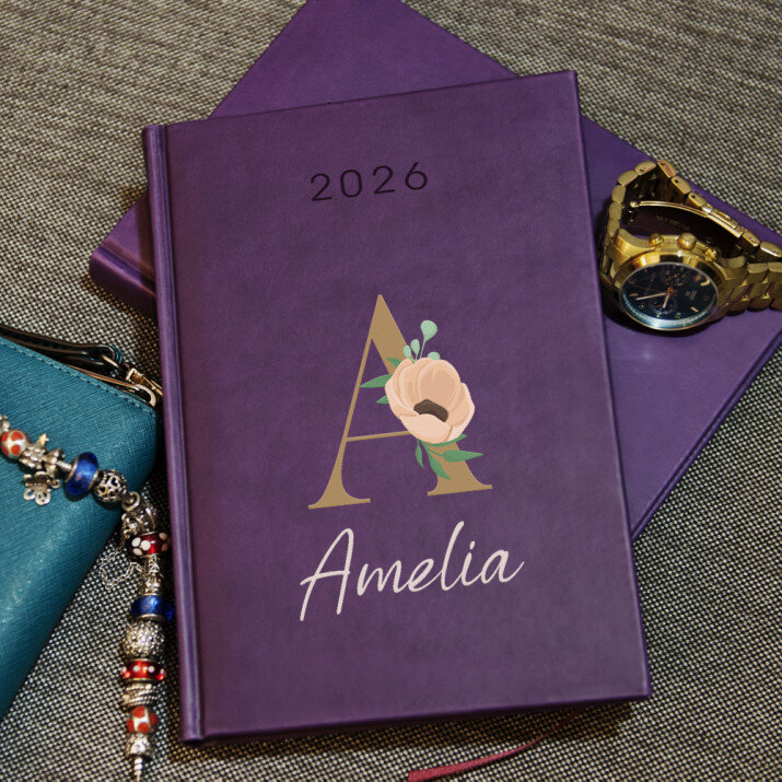 Wysokiej jakości kalendarz książkowy w formacie A5.Oprawa z aksamitnie miękkiego, miłego w dotyku, matowego materiału.