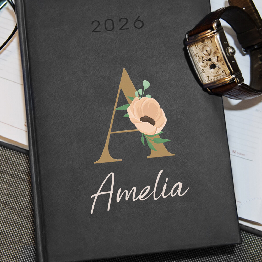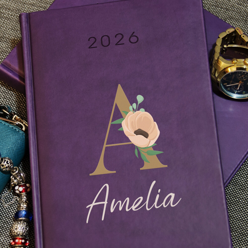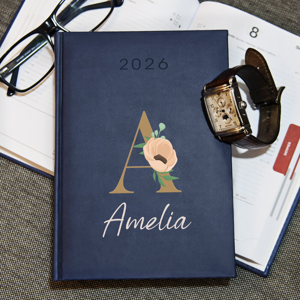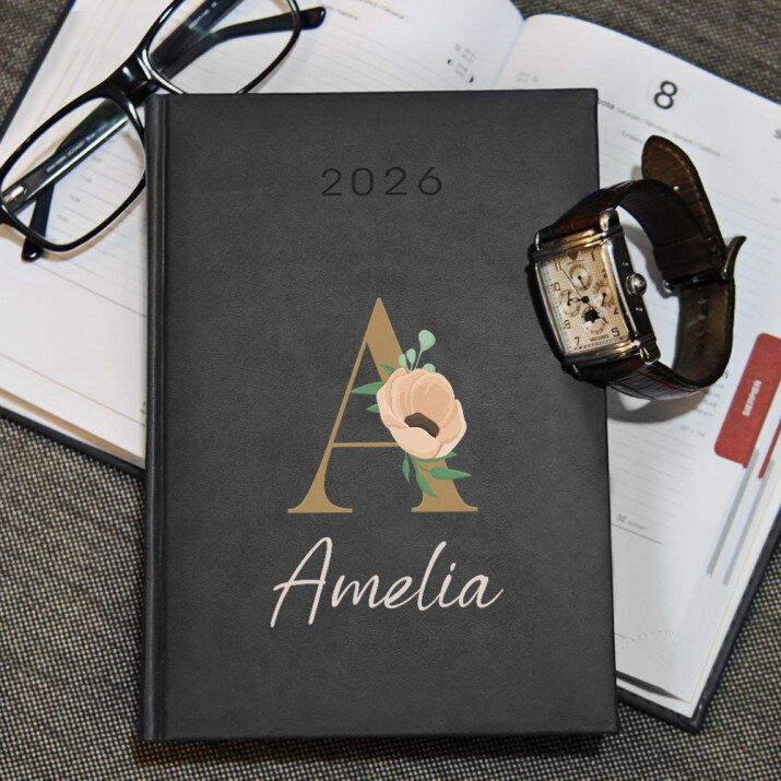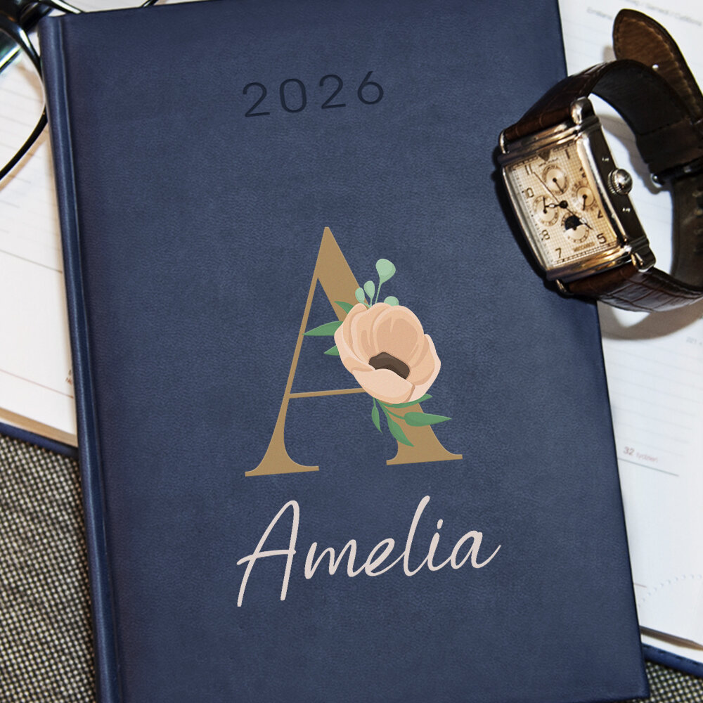 Wysokiej jakości kalendarz książkowy w formacie A5.Oprawa z aksamitnie miękkiego, miłego w dotyku, matowego materiału.