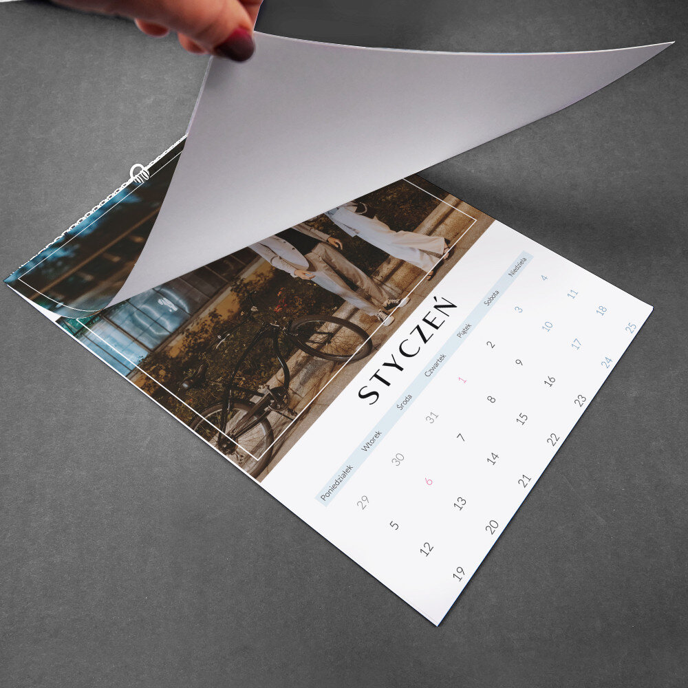 Ścienny kalendarz z Twoimi zdjęciami to świetny prezent i pamiątka pięknych chwil, która zapewni domownikom mnóstwo uśmiechów. Na miesiące ozdobione wybranymi fotografiami aż miło będzie popatrzeć! To wyjątkowa ozdoba do mieszkania, którą możesz podarować np. rodzicom albo przyjaciołom. Kalendarz będzie miłym upominkiem lub pomysłowym dodatkiem do czegoś większego. Pasuje na każdą okazję!WYKONANIE