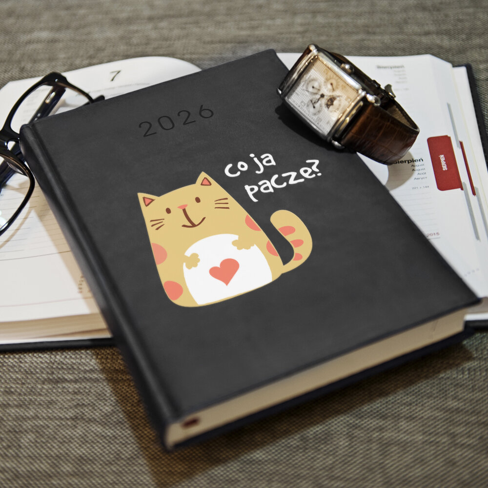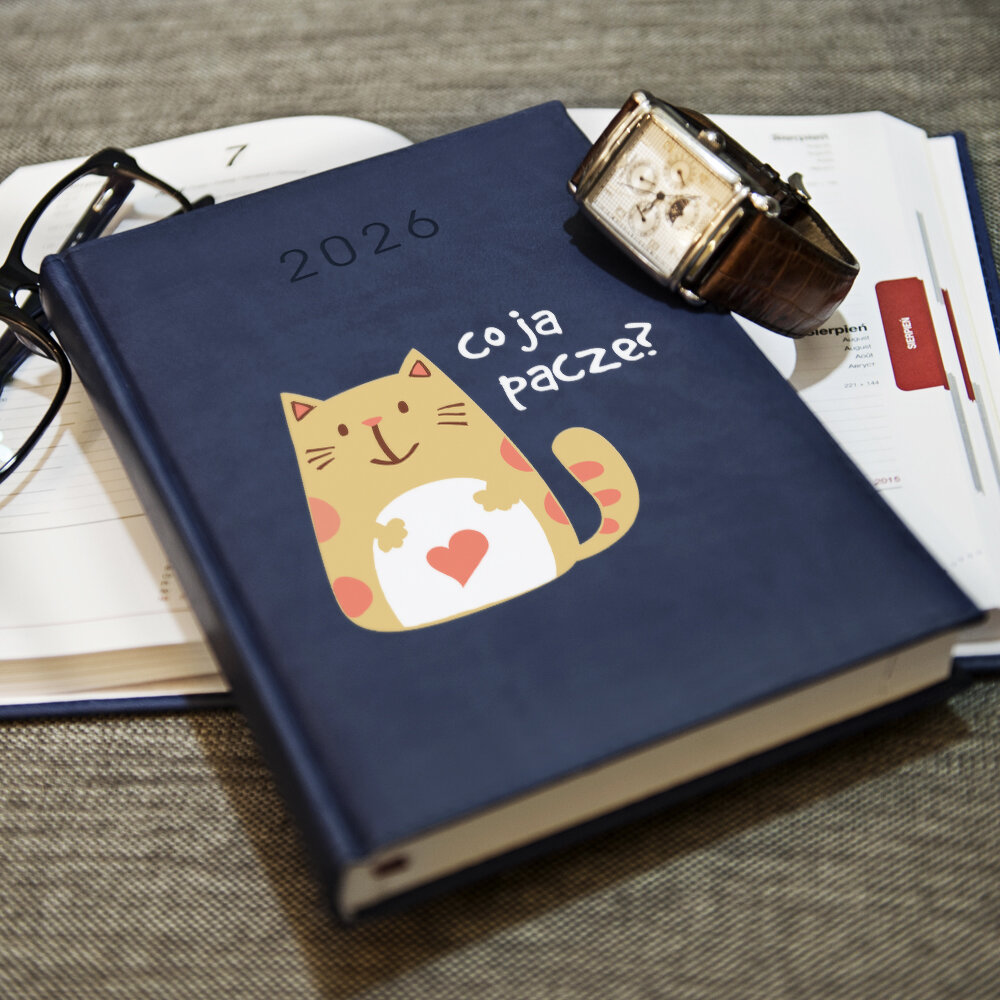 Wysokiej jakości kalendarz książkowy w formacie A5.