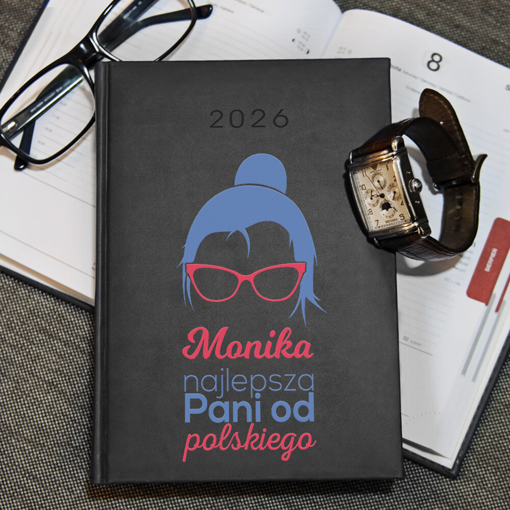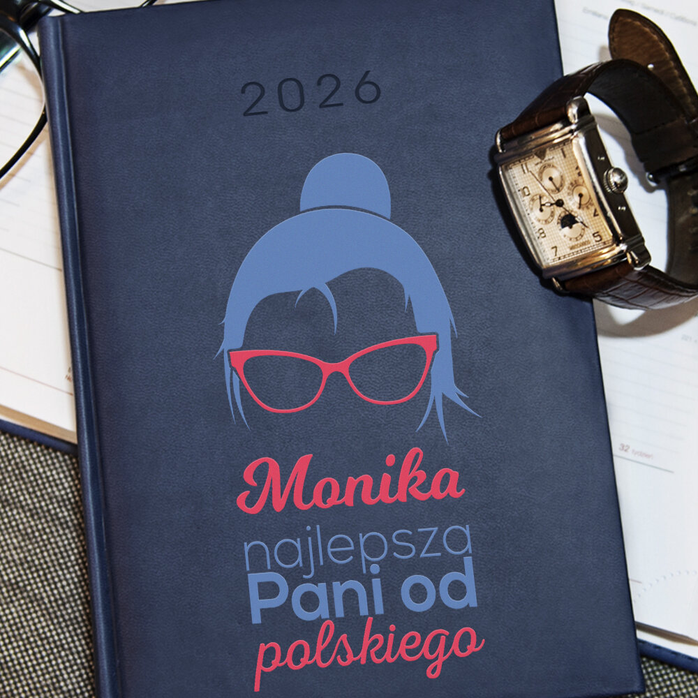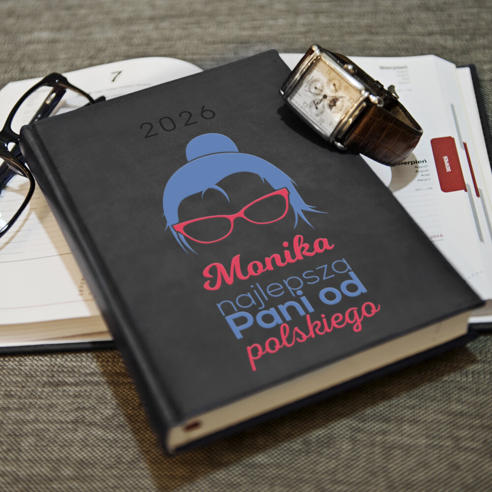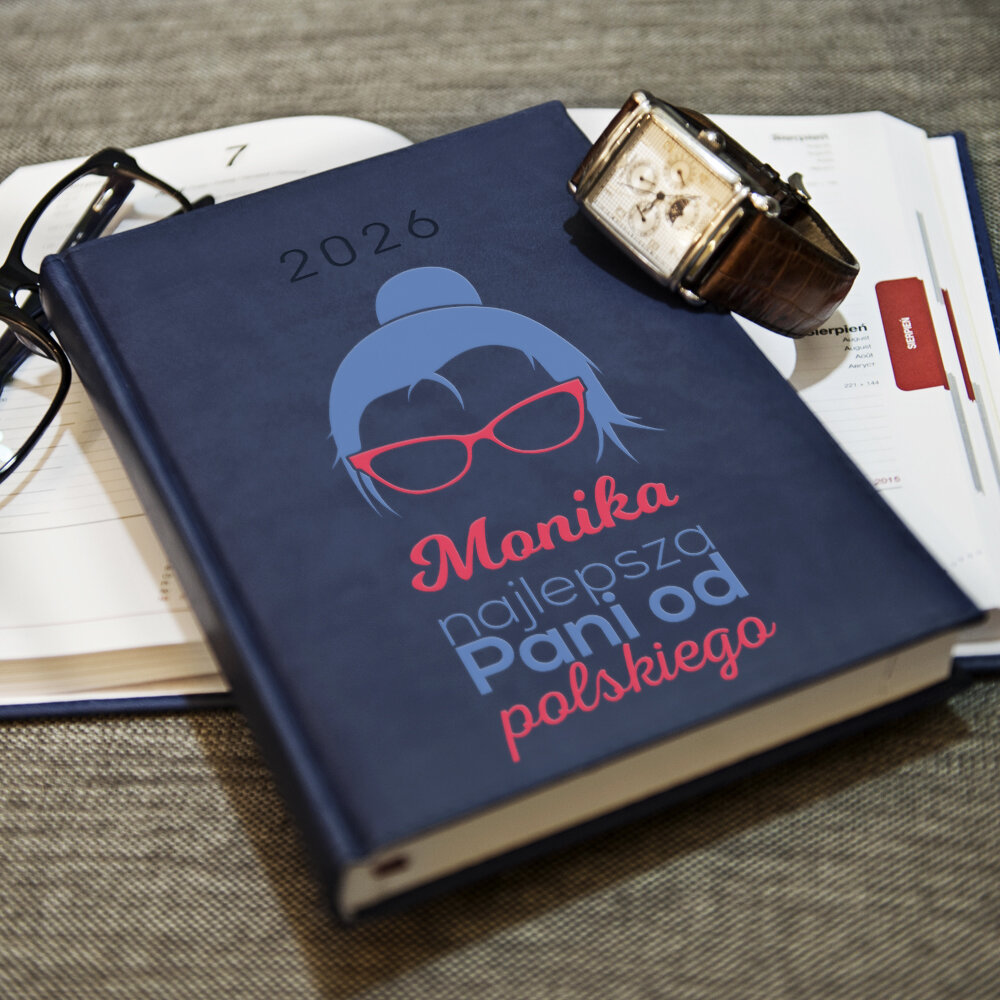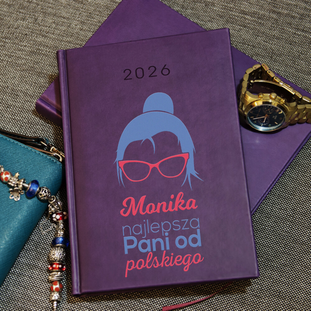 Każdy nauczyciel ma kalendarz. Taka specyfika pracy. Ale najlepsza nauczycielka nie może mieć byle jakiego, tandetnego notesu! Ze swoim osobistym kalendarzem w torebce, pani od polskiego zawsze będzie przychodziła na lekcje uśmiechnięta i w dobrym humorze. A przecież wtedy nie zrobi żadnej kartkówki i nie wywoła pod tablicę ucznia, który podarował jej taki fajny prezent!
