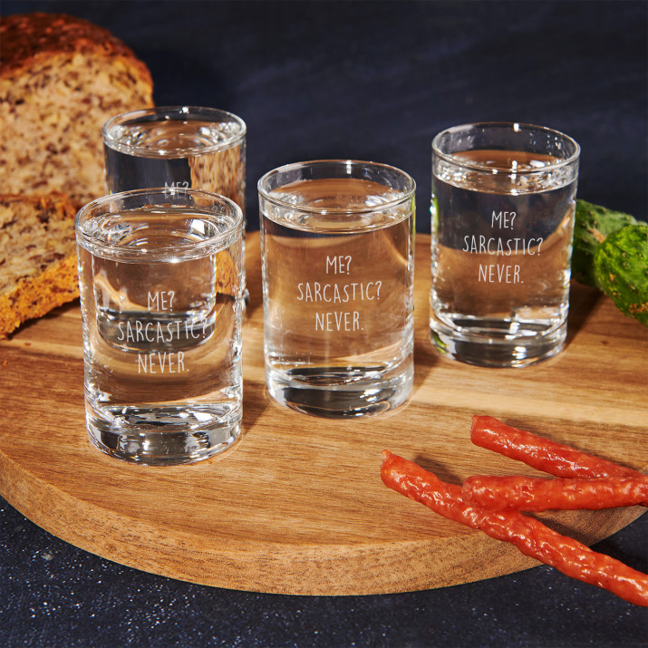 Niektórzy to mają cięte riposty! Czasem, żeby dorównać takiej osobie trzeba wytoczyć jeszcze większe działa. Postaw na stole specjalnie grawerowane kieliszki do wódki, polej alkohol i zobacz co się stanie!WYKONANIE