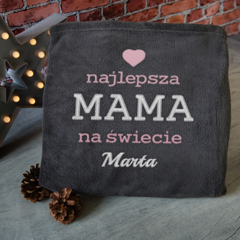 Koc o wymiarach 140 x 200 cm w kolorze szarym lub różowym, wykonany z wysokogatunkowego polaru, charakteryzuje się niepowtarzalną puszystością i miękkością, ozdobiony jednym z naszych personalizowanych haftowanych wzorów.