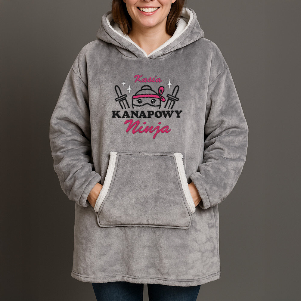 Idealny gazet dla osób kochających ciepełko! Kocobluza to świetny pomysł na prezent, dla wszystkich zmarzluchów. Mięciutki materiał i przyjemna tkanina sprawiają, że chce się ją mieć cały czas na sobie. Kocobluza jest luźna i obszerna, co pozwala na wygodne jej noszenie. Kaptur jest wyściełany puszystym materiałem. Do tego kocobluza ma kieszeń na środku, w którą można ogrzać ręce lub schować drobiazgi.