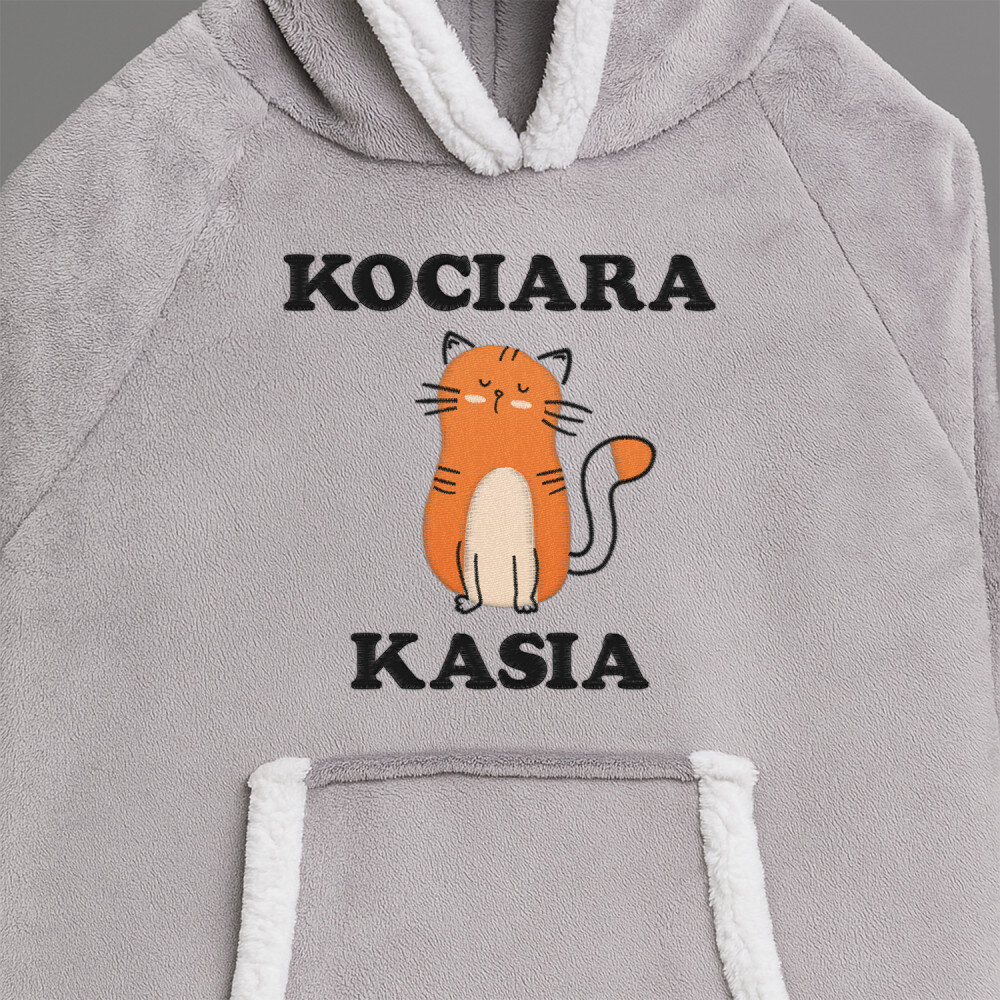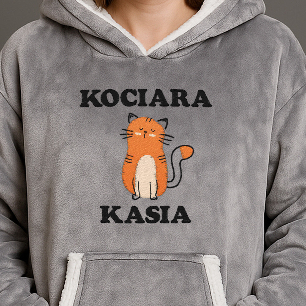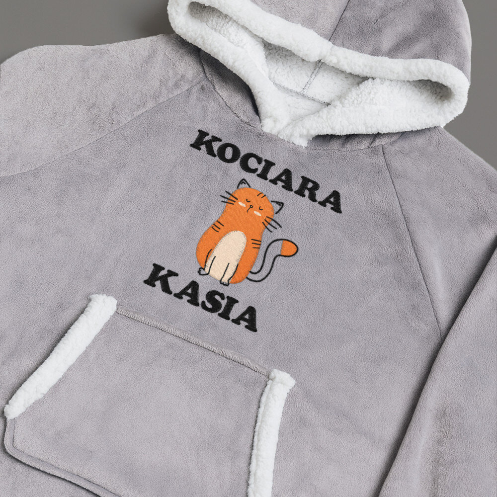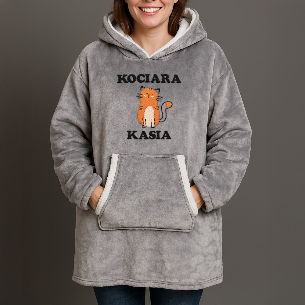 Idealny gadżet dla osób kochających ciepełko! Kocobluza to świetny pomysł na prezent, dla wszystkich zmarzluchów. Mięciutki materiał i przyjemna tkanina sprawiają, że chce się ją mieć cały czas na sobie. Kocobluza jest luźna i obszerna, co pozwala na wygodne jej noszenie. Kaptur jest wyściełany puszystym materiałem. Do tego kocobluza ma kieszeń na środku, w którą można ogrzać ręce lub schować drobiazgi.