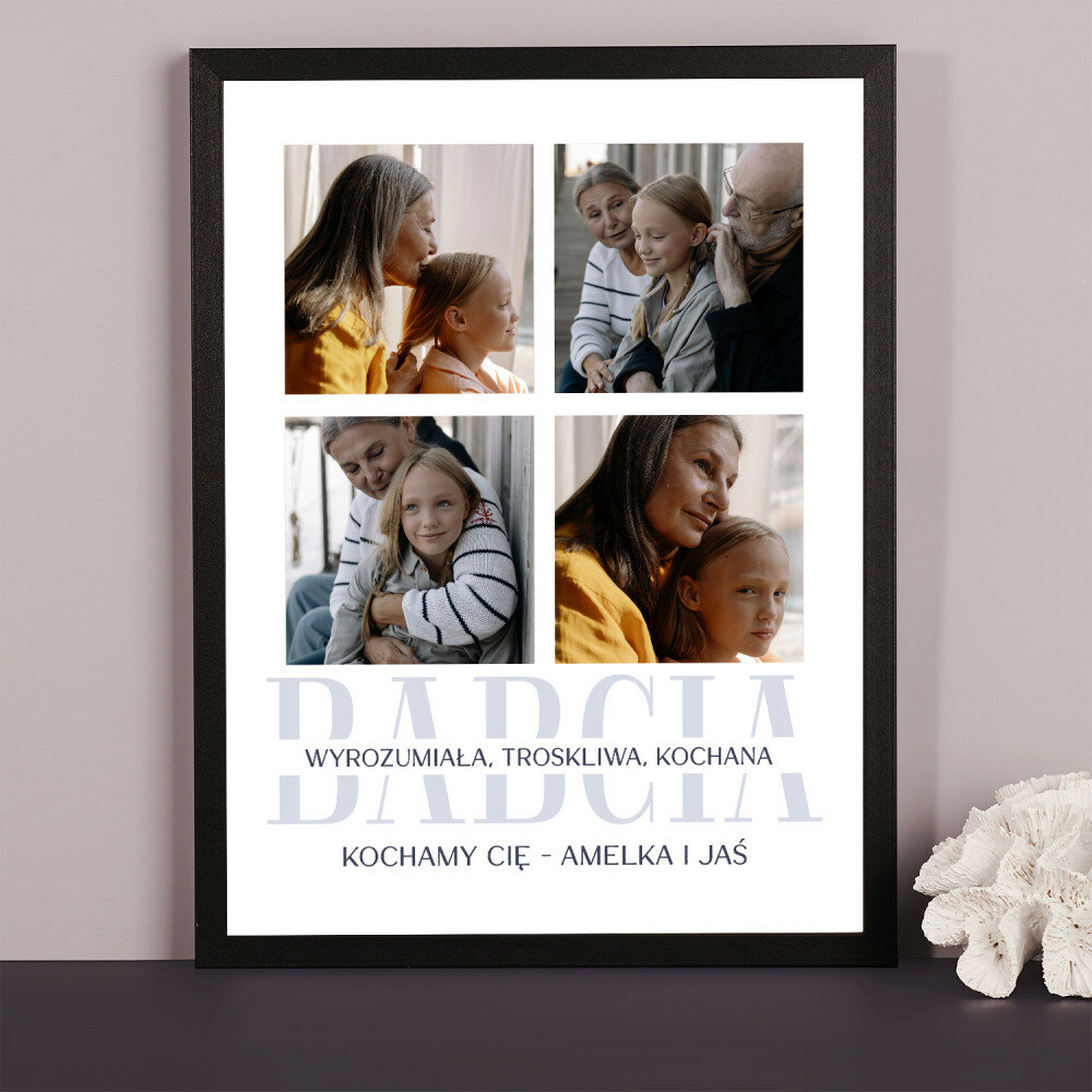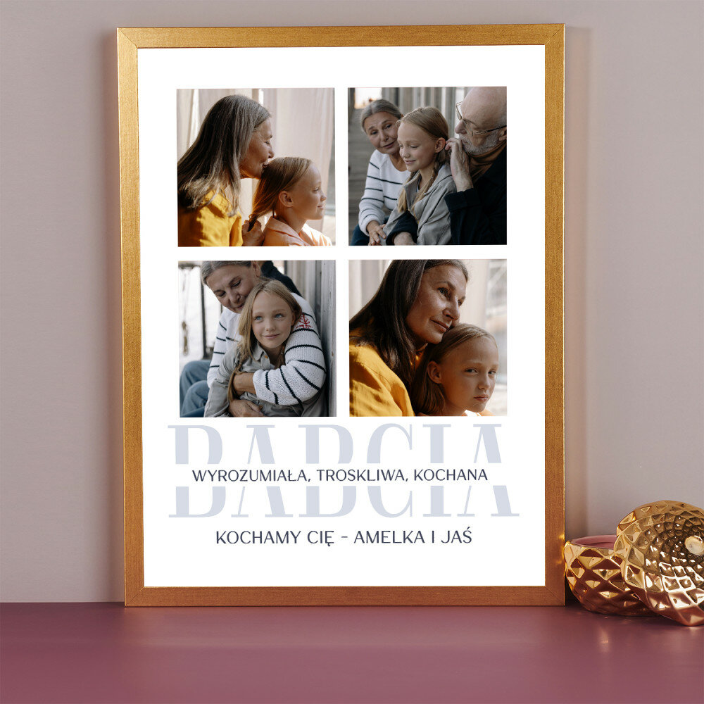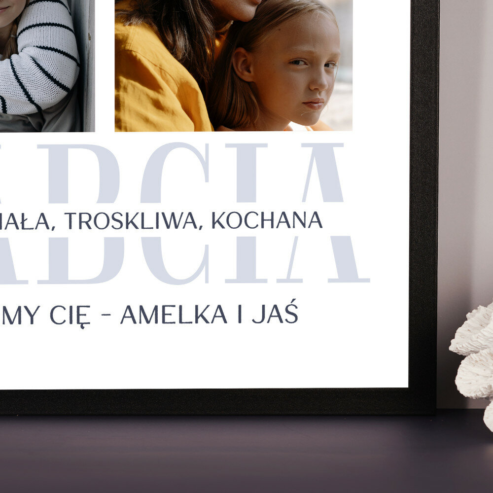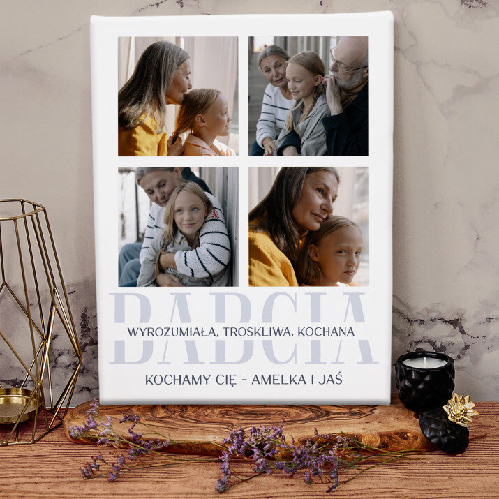 Piękna kompozycja Twoich zdjęć z kilkoma słowami prosto z serca oraz podpisami. Idealny prezent dla tych, z którymi łączy Cię mnóstwo wspomnień. Wystarczy wybrać ulubione fotografie najważniejszych dla Was chwil, a powstanie pamiątka, która zostanie z obdarowaną osobą na zawsze. To również niezwykle oryginalna i efektowna dekoracja do mieszkania.