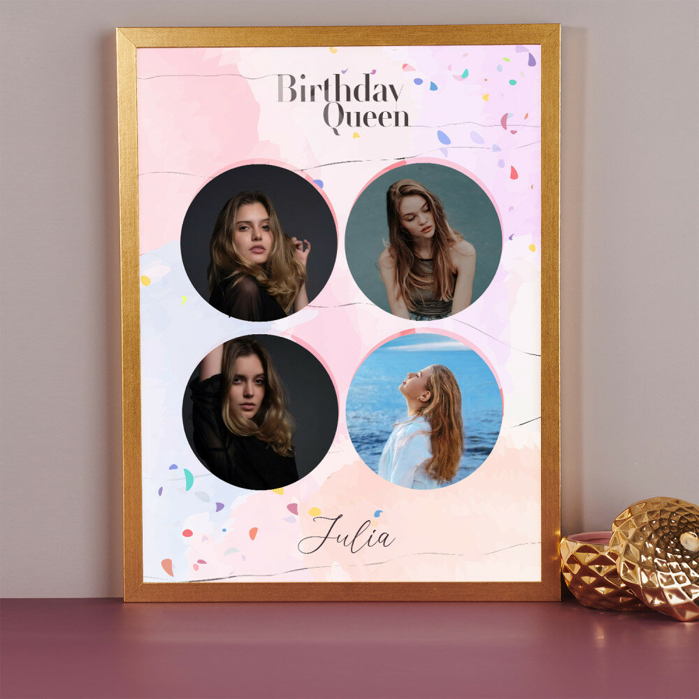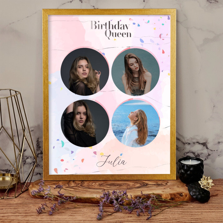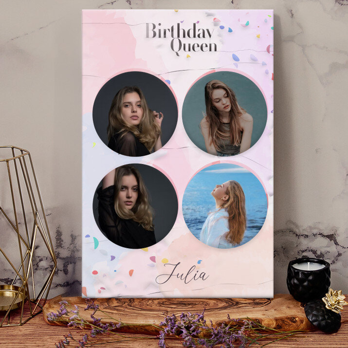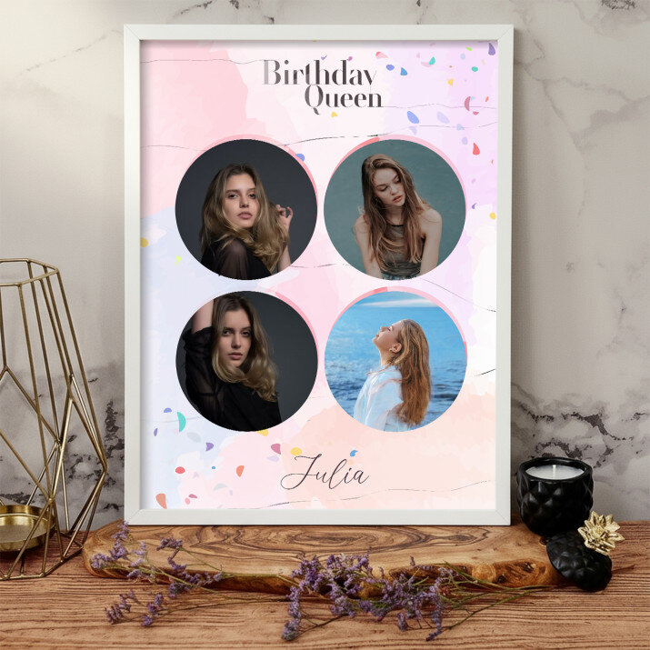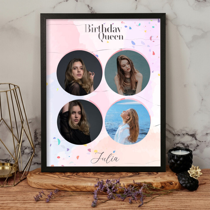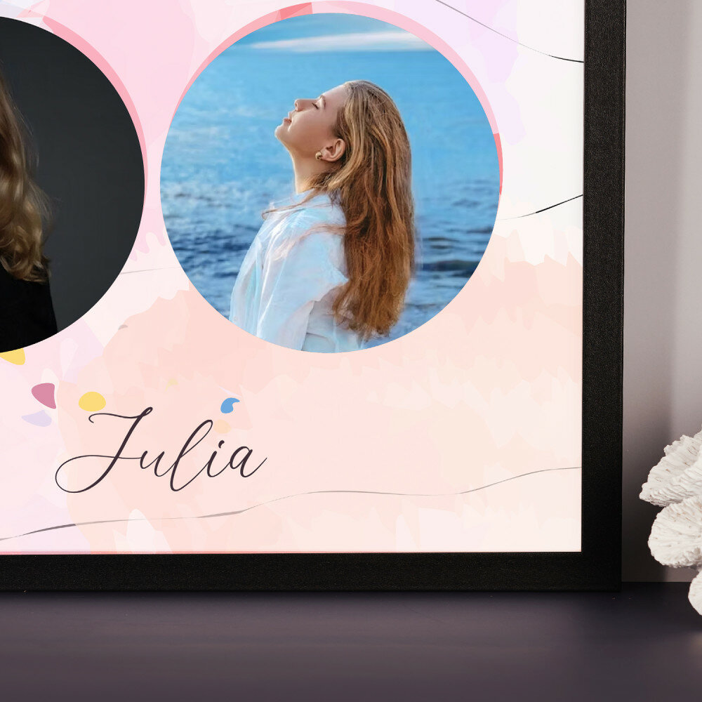 Piękna kompozycja Twoich zdjęć z kilkoma słowami prosto z serca oraz podpisami. Idealny prezent dla tych, z którymi łączy Cię mnóstwo wspomnień. Wystarczy wybrać ulubione fotografie najważniejszych dla Was chwil, a powstanie pamiątka, która zostanie z obdarowaną osobą na zawsze. To również niezwykle oryginalna i efektowna dekoracja do mieszkania.