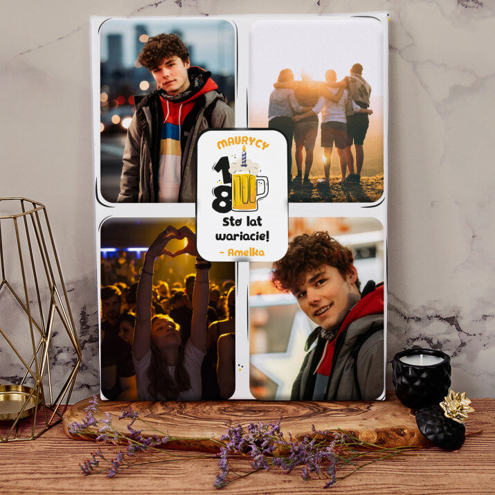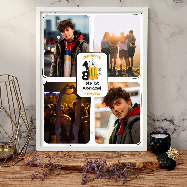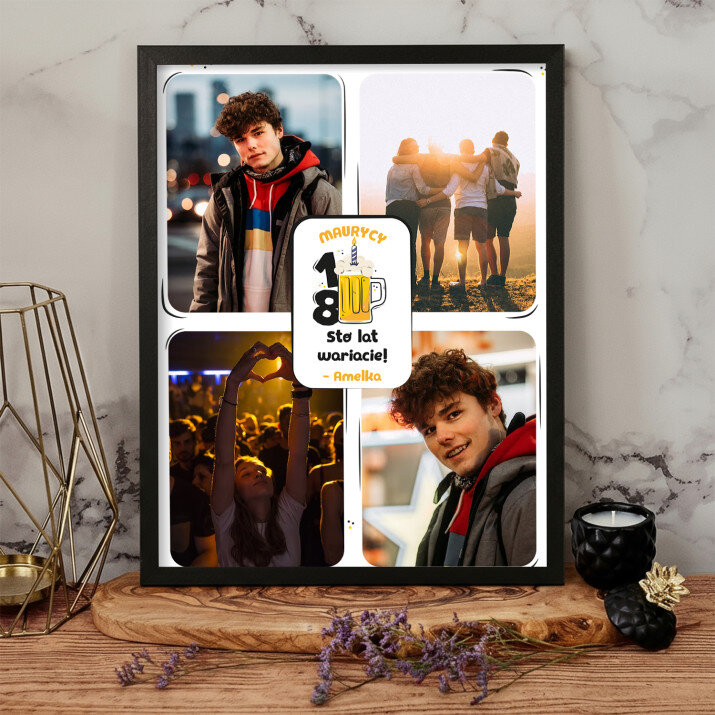 Ten kolaż ze zdjęć to idealny prezent na osiemnastkę. Personalizacja jest genialna, a złota ramka dodaje mu elegancji. Jubilat był zachwycony!