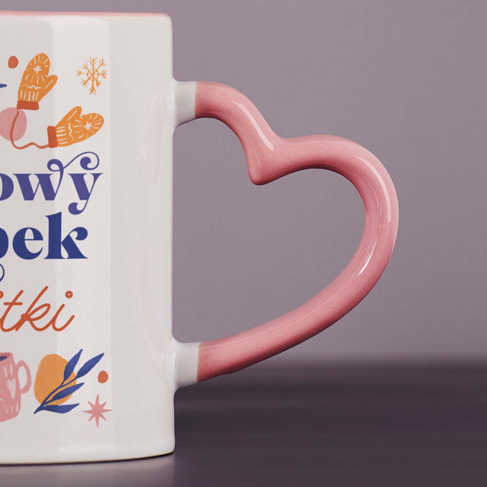 Dostępne są również kubki z uszkiem w kształcie serca i różowym środkiem, o pojemności 330 ml