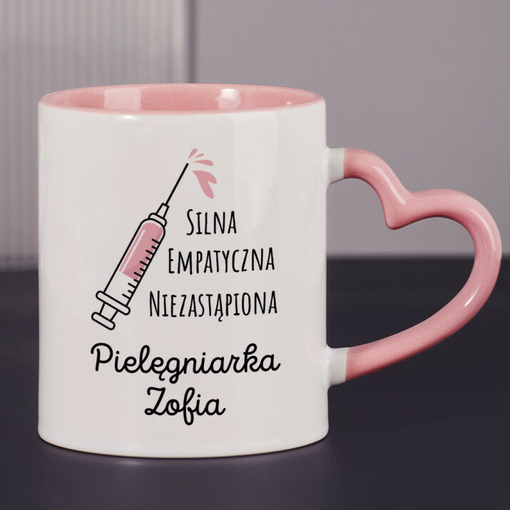 Dostępne są również kubki z uszkiem w kształcie serca i różowym środkiem, o pojemności 330 ml