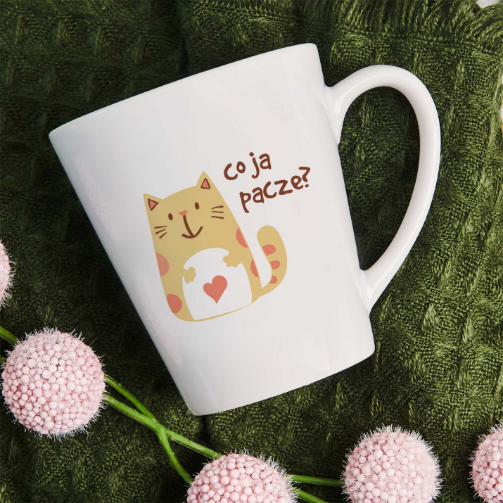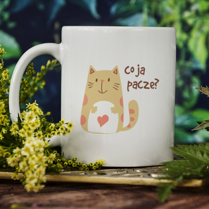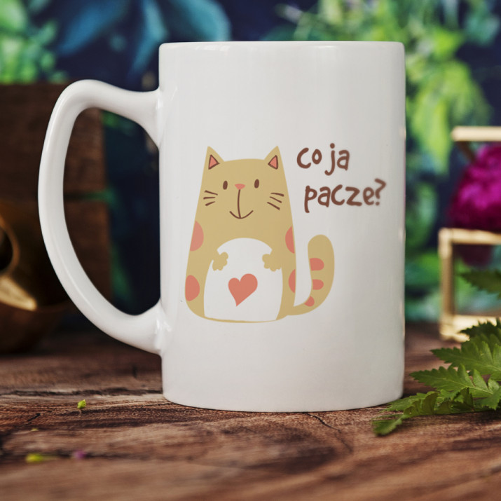 Popularny internetowy mem z kotem w roli głównej przeniesiony na elegancki kubek. Co ja pacze? Pacze i widzę fajny pomysł na oryginalny prezent dla kogoś czującego takie klimaty!Wykonanie