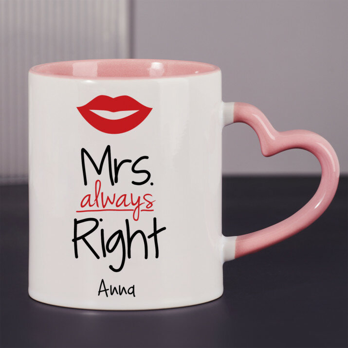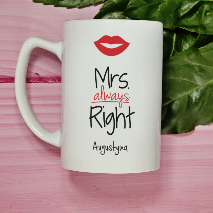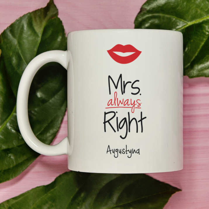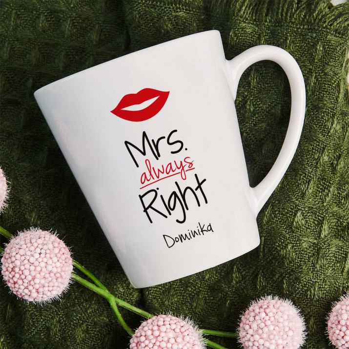 Kubek Mrs. Always Right to doskonały prezent dla mojej żony. Uwielbia go i codziennie używa z uśmiechem.