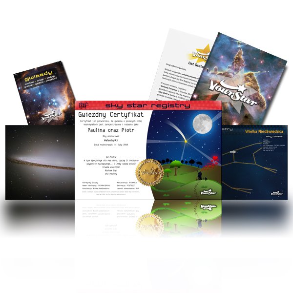 Nazwana gwiazda jest również zarejestrowana w rejestrze Sky Star Registry, który możesz zobaczyć tutaj.W skład Zestawu Rocznicowego wchodzą: