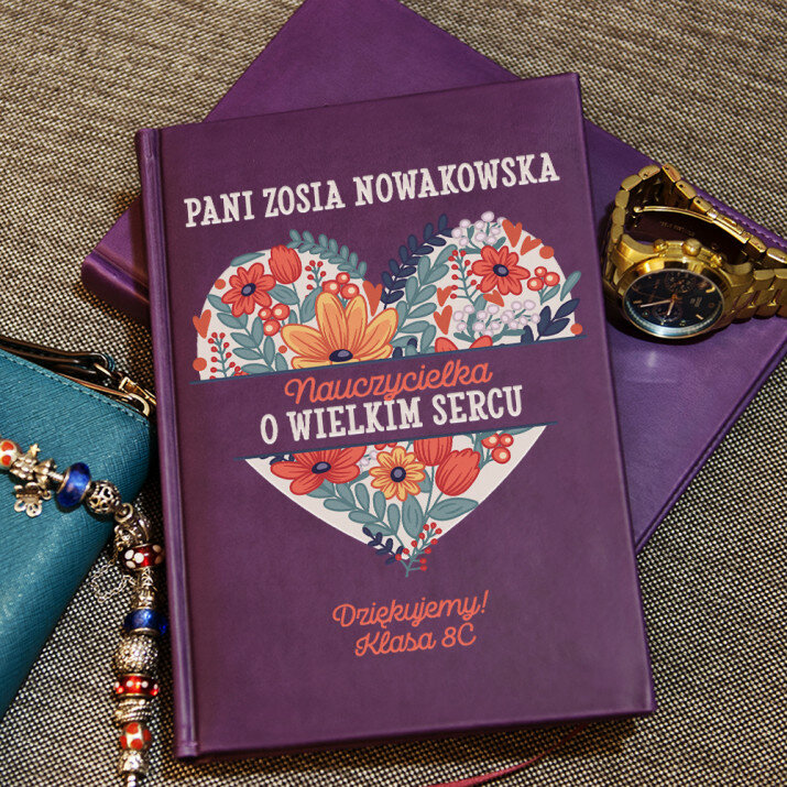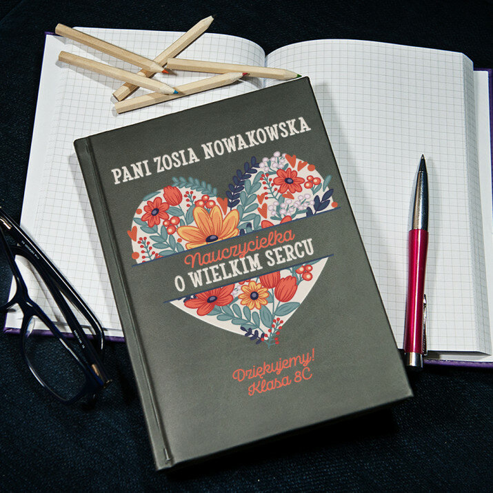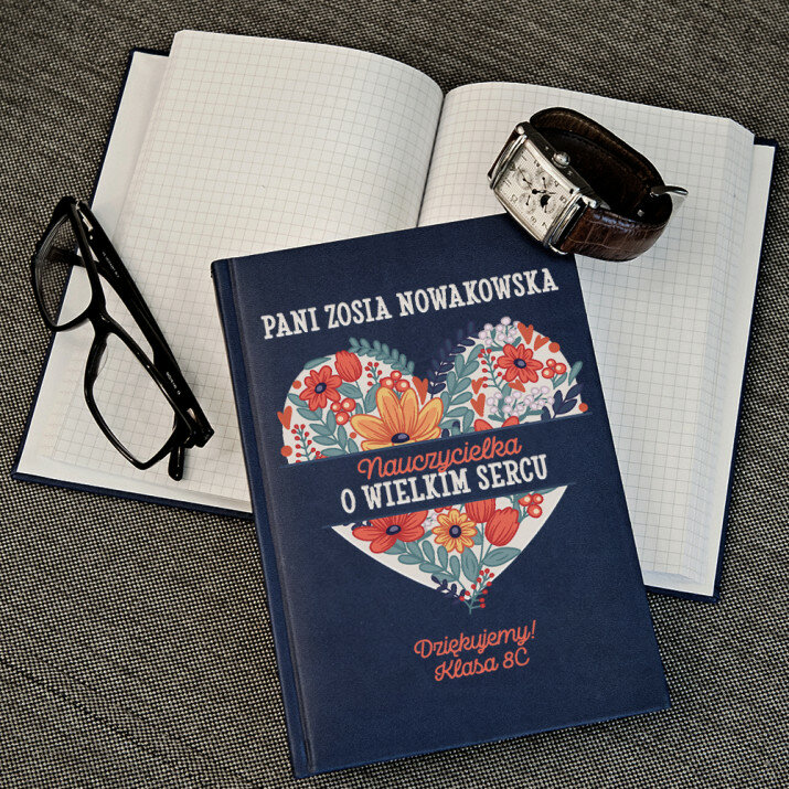 Notatnik książkowy w formacie A5 z wysokiej jakości nadrukiem UV.Notatnik wykończony jest miękkim materiałem i obszyty na brzegach.