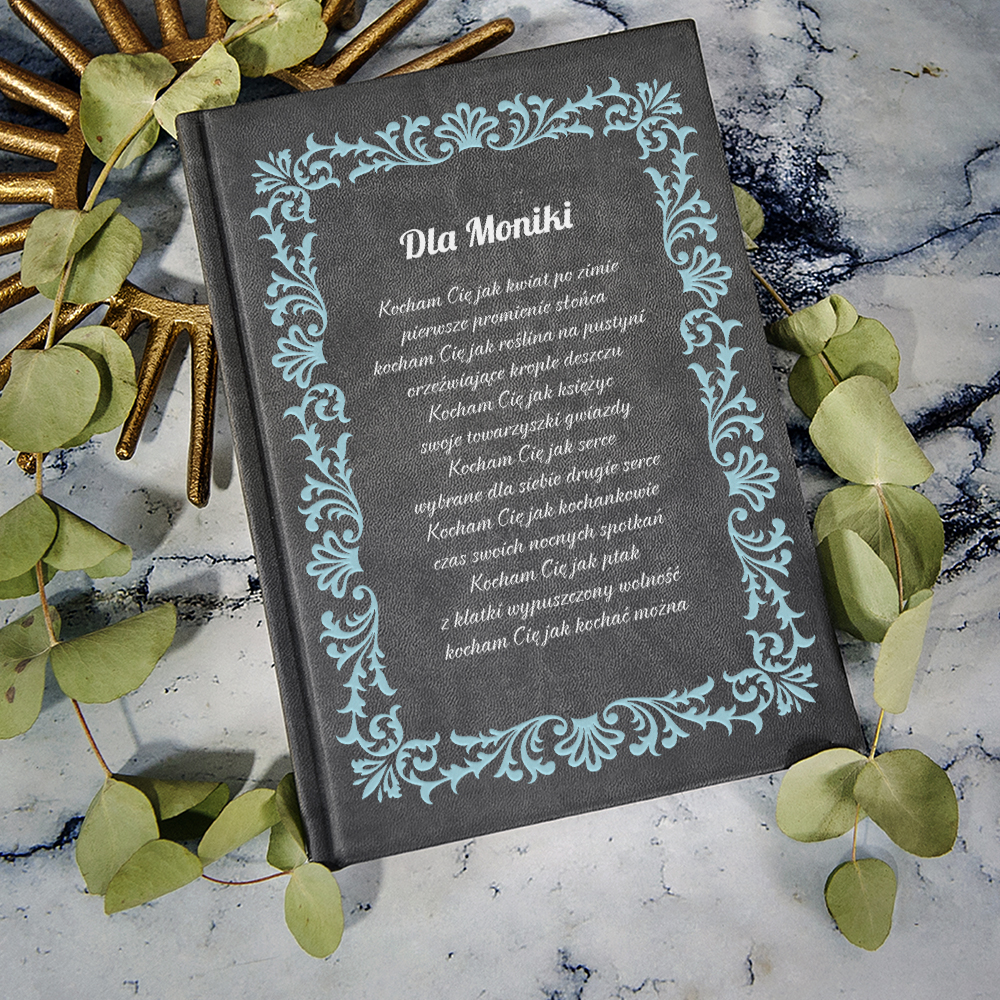 Masz w głowie efektowne życzenia lub dedykację dla kogoś bliskiego i szukasz odpowiedniego miejsca na twoje słowa? Wypełnij nimi okładkę tego stylowego notatnika! Zrobi piorunujące wrażenie!Wykonanie