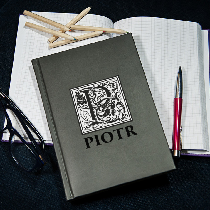 Efektownie ozdobiony notatnik imieniem właściciela i stylowym monogramem to świetny pomysł na prezent! Taki notes na pewno przyda się w pracy, jak i w domu do zapisania czegoś ważnego.Wykonanie