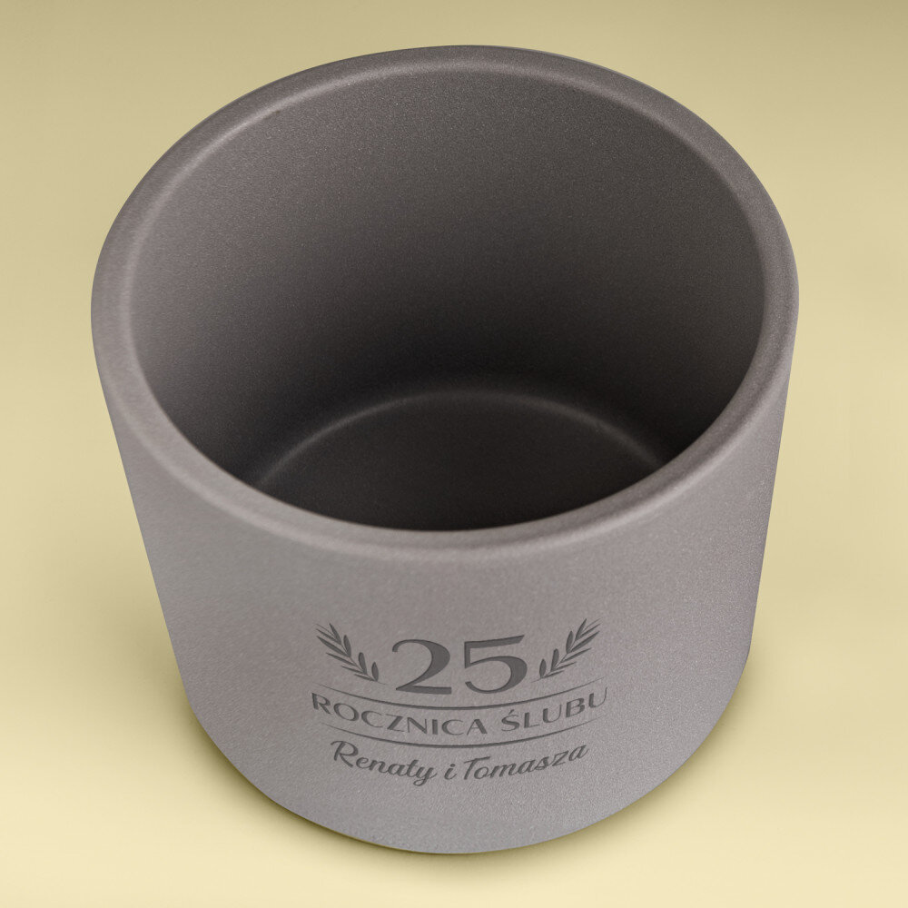 Osłonka ceramiczna na doniczkę w kolorze szarym prezentuje się niezwykle elegancko i zachwyci swoją nowoczesną formą nawet najbardziej wymagające osoby! Osłonka jest wodoszczelna i idealnie sprawdzi się do różnego rodzaju roślin. Personalizacja na osłonce sprawi, że upominek będzie jeszcze bardziej osobisty!