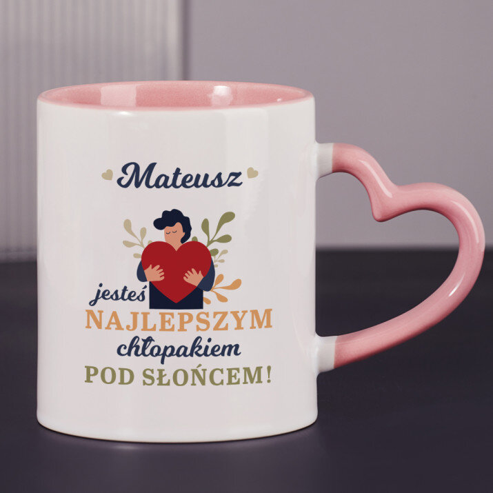 Dostępne są również kubki z uszkiem w kształcie serca i różowym środkiem, o pojemności 330 ml