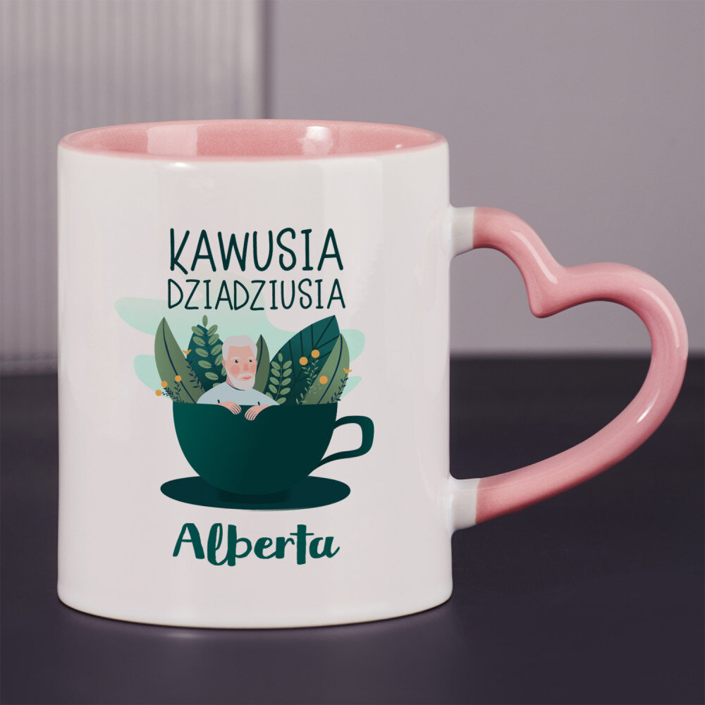 Dostępne są również kubki z uszkiem w kształcie serca i różowym środkiem, o pojemności 330 ml