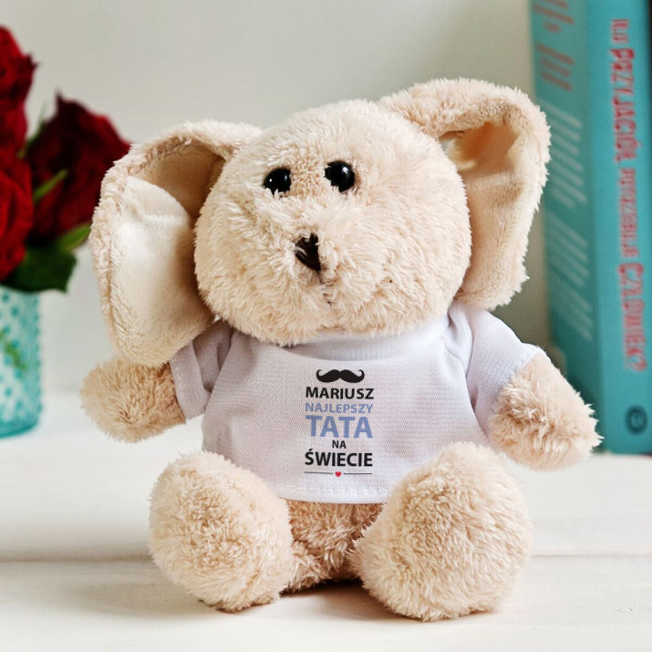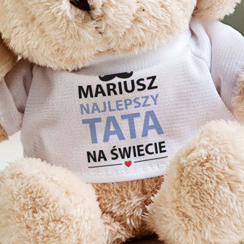 Chcesz wzruszyć swojego tatę i w niebanalny sposób powiedzieć mu jaki jest wspaniały? Urocza maskotka z koszulką, na której nadrukujemy wybrane przez Ciebie imię i napis, może sprawić, że jego oczach pojawią się łzy wzruszenia!Wykonanie
