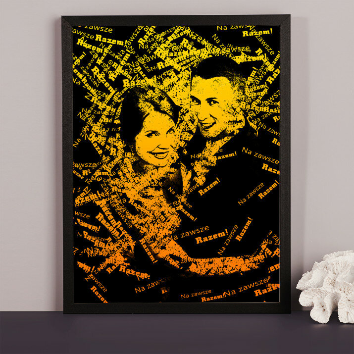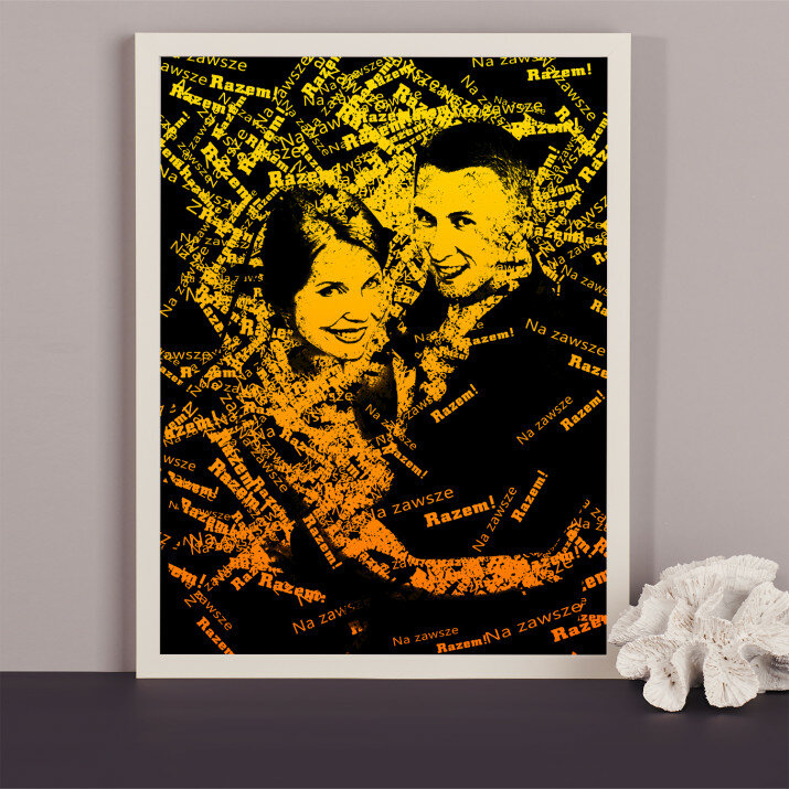 Obraz ze zdjęcia, które jest stworzone z przesłanych przez Ciebie słów. Przekaż wiadomość łącząc zdjęcie ze słowami w mocnych czarno-żółtych kolorach, które rzucają się w oczy!STYLOWY PORTRET
