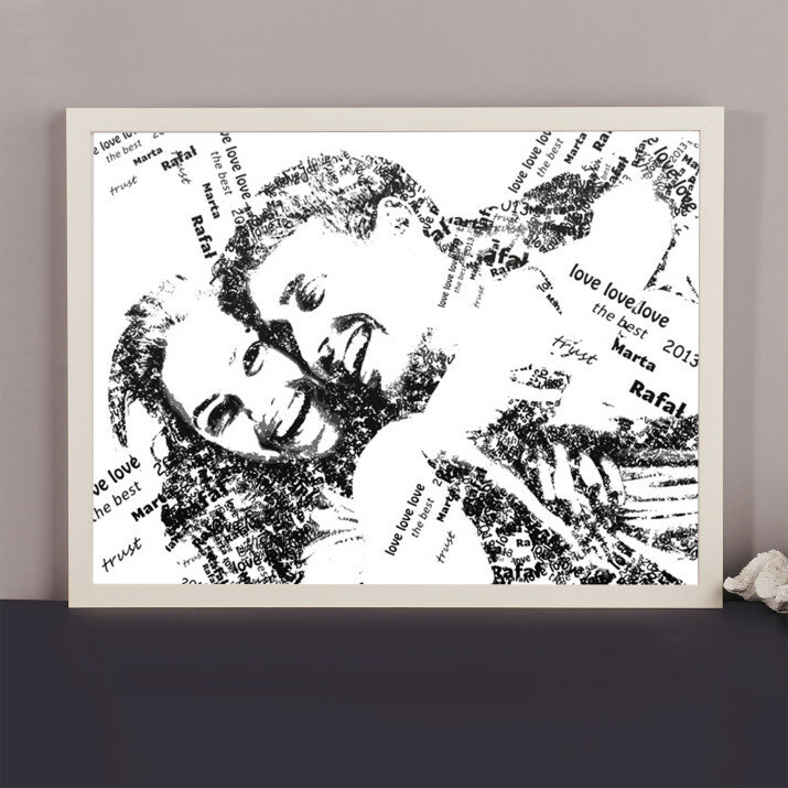 Klasyczna czarno-biała kolorystyka połączona z naszym bestsellerowym zdjęciem ze słów. Możesz nadać wyjątkowy charakter swojemu zdjęciu przekazując w nim ważną wiadomość.STYLOWY PORTRET