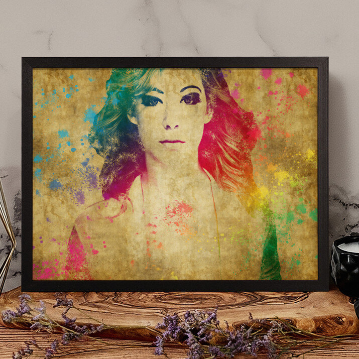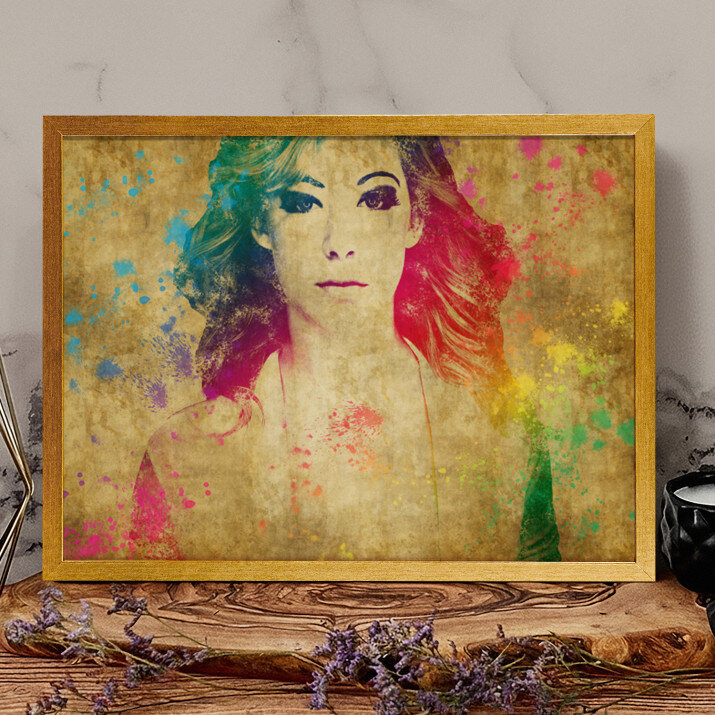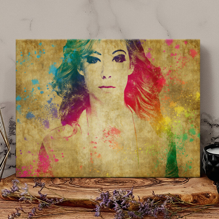Styl Watercolor charakteryzuje się mocnymi kolorami i intensywnymi plamami farby jak w obrazach malowanych akwarelami. Taki obraz na ścianie przykuje uwagę każdego!STYLOWY PORTRET