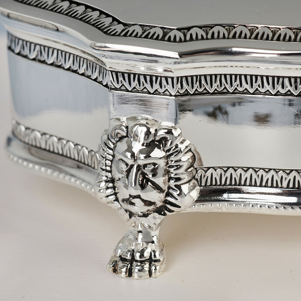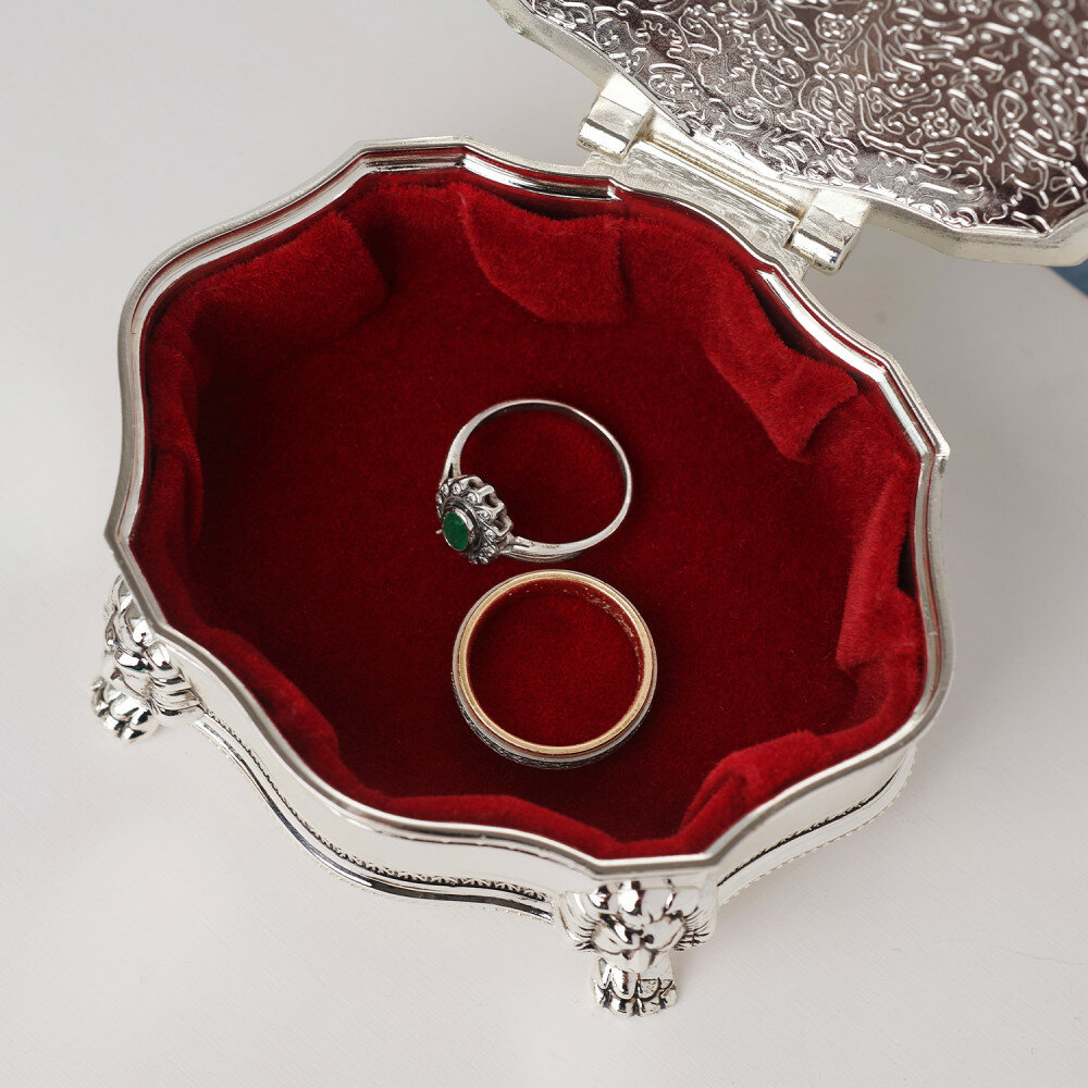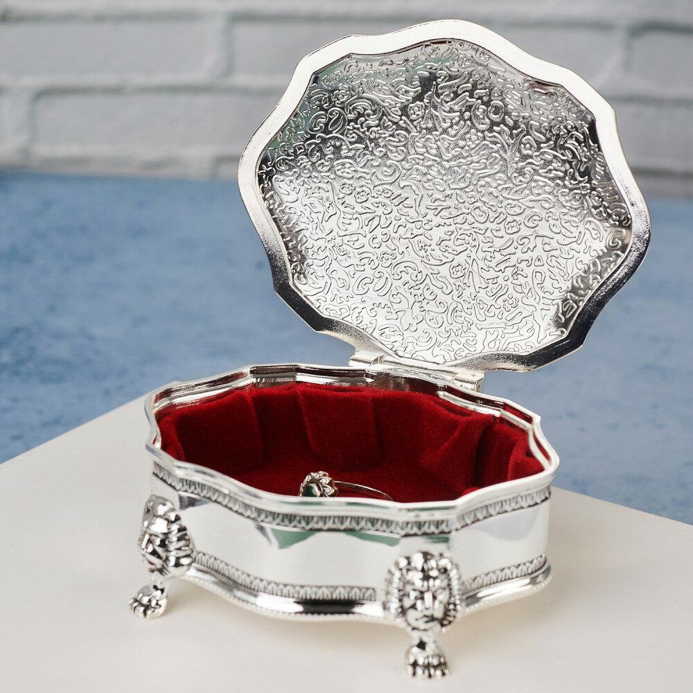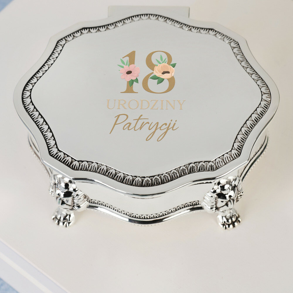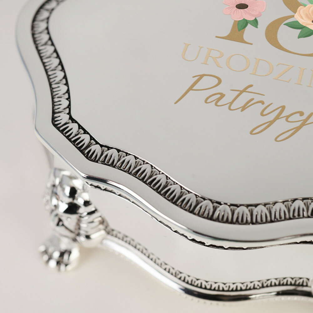- Pięknie zdobiona posrebrzana szkatułka na biżuterię.