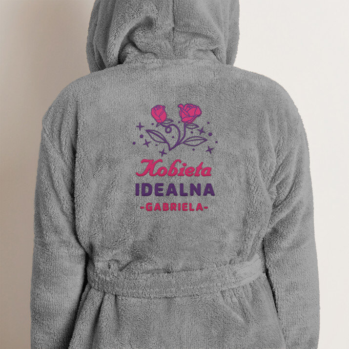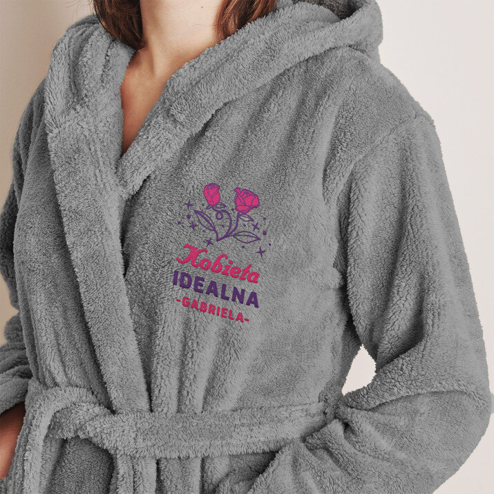 Uniwersalny szlafrok polarowy w kolorze szarym, wykonany ze 100% poliestru wellsoft. Wygodny, ładny, mięciutki - zapewni doskonały komfort, gdy wszystkie troski dnia odejdą w dal i nadejdzie czas na relaks. Ogrzeje również zaspane ciałko zaraz po przebudzeniu. Szlafrok ozdobiony jest personalizowanym haftem, który pięknie wygląda, poprawia samopoczucie i zamienia produkt w wyjątkowy upominek!Szlafrok ma elegancki fason z kapturem i kieszeniami, aby można było zabłysnąć na wieczornym pokazie mody podomowej. Rozmiar szlafroka uniwersalny, gramatura 300 g/m2. Unisex.