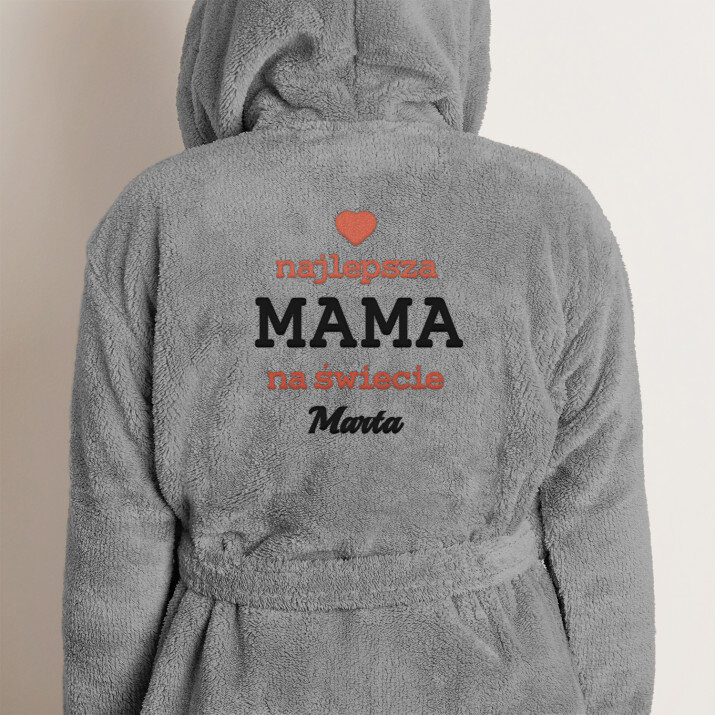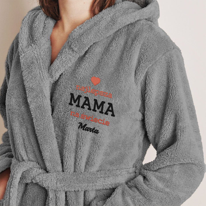 Uniwersalny szlafrok polarowy w kolorze szarym, wykonany ze 100% poliestru wellsoft. Wygodny, ładny, mięciutki - zapewni doskonały komfort, gdy wszystkie troski dnia odejdą w dal i nadejdzie czas na relaks. Ogrzeje również zaspane ciałko zaraz po przebudzeniu. Szlafrok ozdobiony jest personalizowanym haftem, który pięknie wygląda, poprawia samopoczucie i zamienia produkt w wyjątkowy upominek!Szlafrok ma elegancki fason z kapturem i kieszeniami, aby można było zabłysnąć na wieczornym pokazie mody podomowej. Rozmiar szlafroka uniwersalny, gramatura 300 g/m2. Unisex.