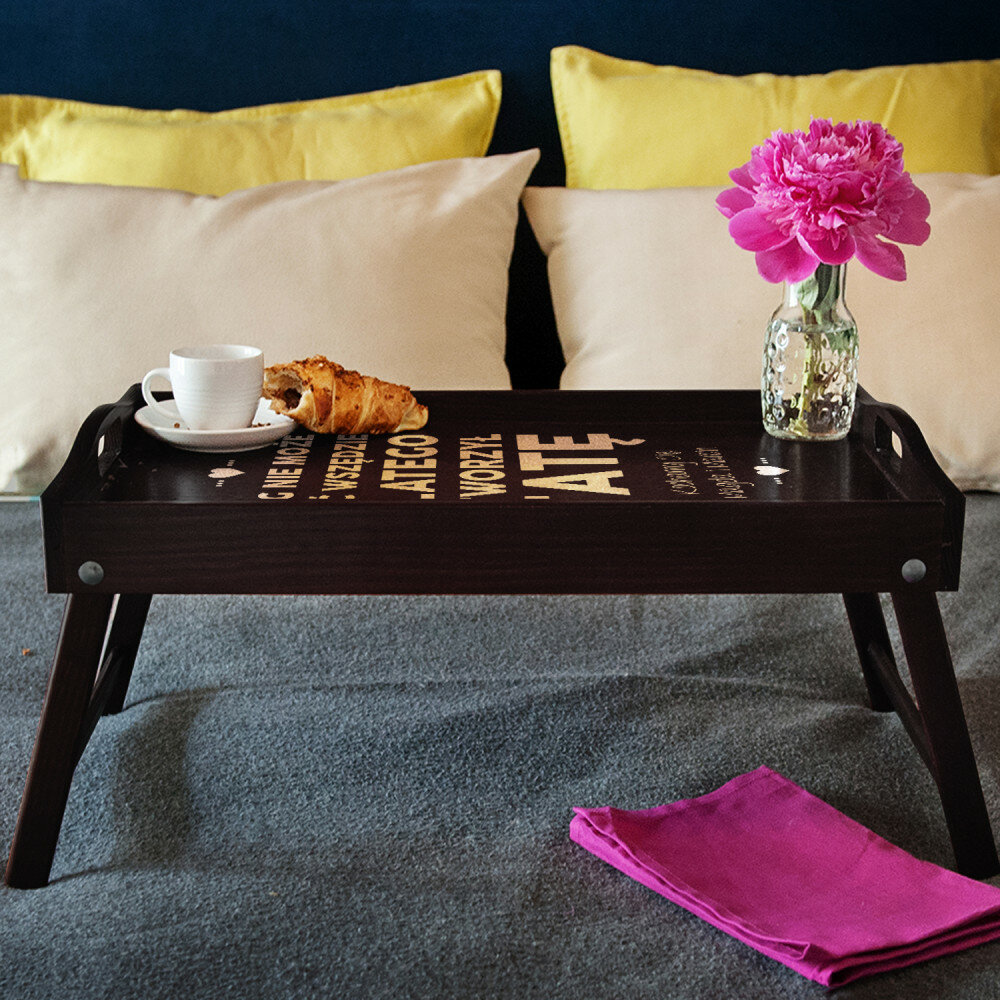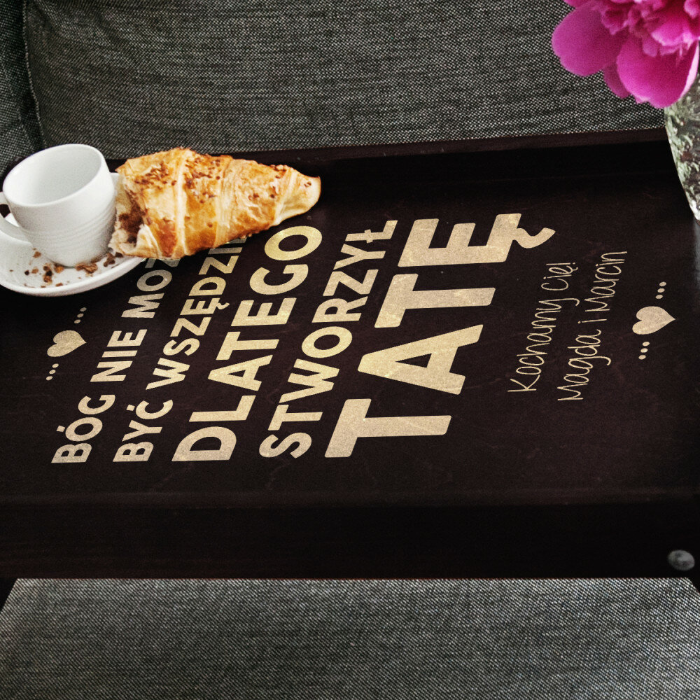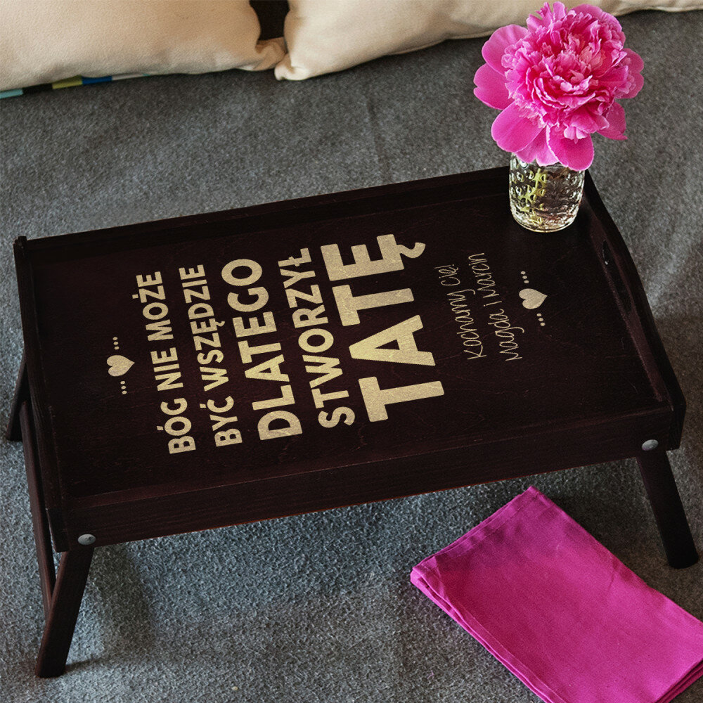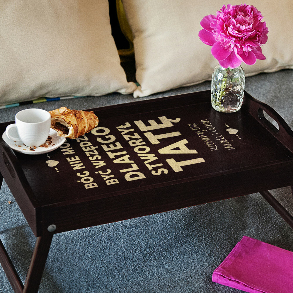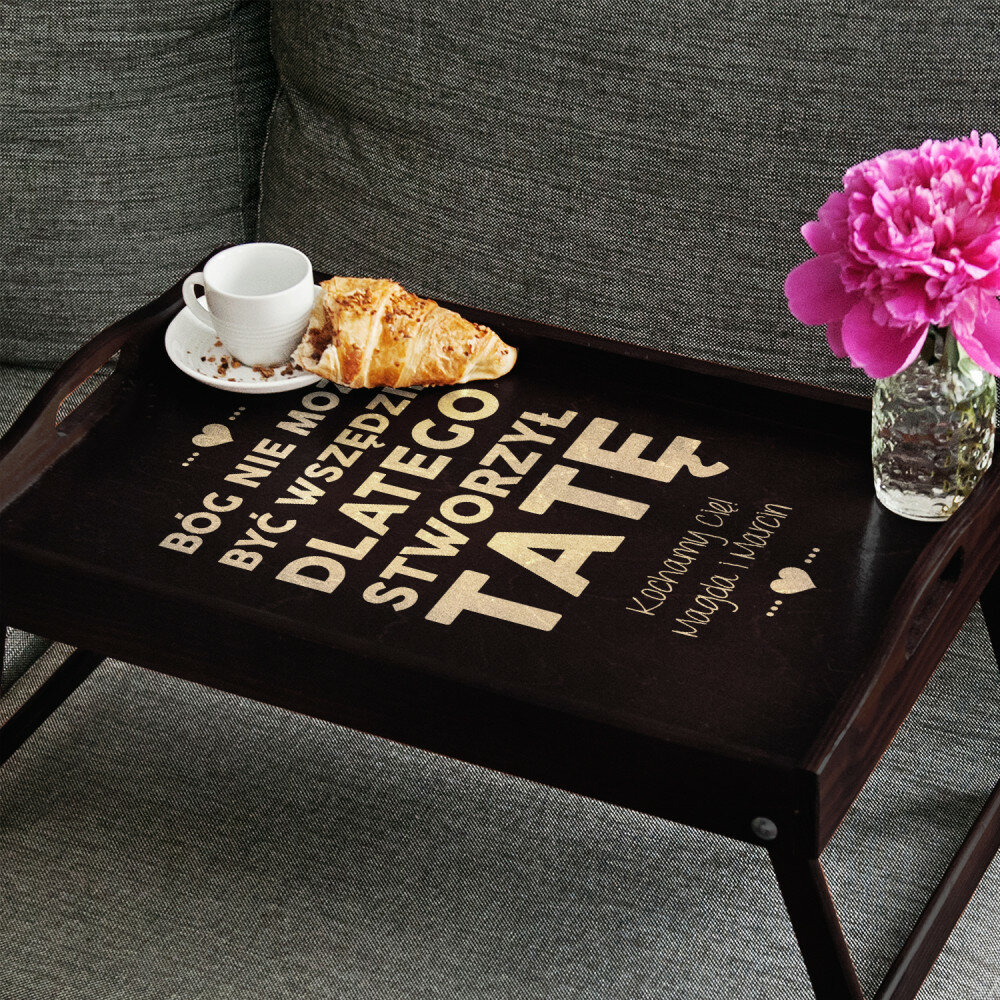 Taca wykonana jest solidnie, grawer jest bardzo ładny. Jest to świetny pomysł na prezent i przydatny podczas śniadania w łóżku, ale i jako taca na zaniesienie np kawy i ciasta na podwórze :)