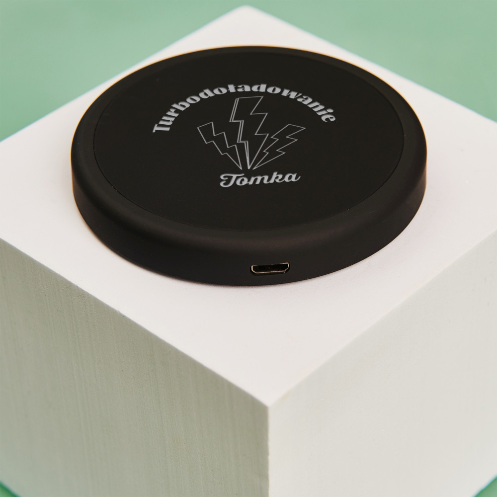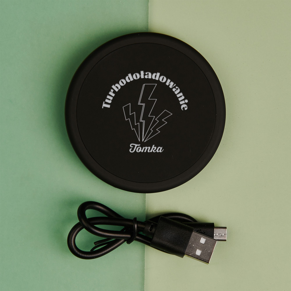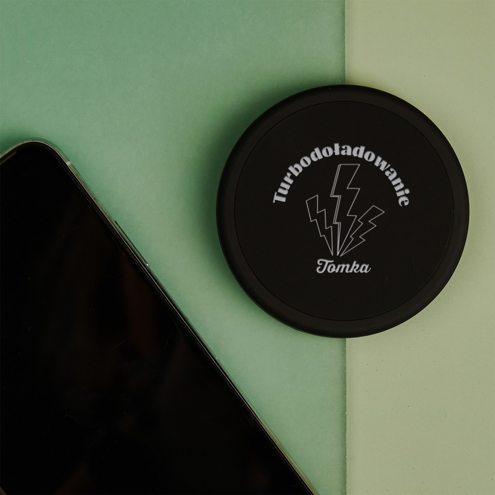 Doładuj się potężnym kopniakiem energii z naszą ładowarką indukcyjną. Ten gadżet przyda Ci się w podróży, podczas wakacji lub w pracy, gdy zabraknie Ci mocy. Możesz również zrobić z niego prezent na wiele okazji dla Twoich bliskich. Nie wymaga kabla do ładowania telefonu, co z pewnością jest ogromnym atutem i sprawia, że technologia ładowania indukcyjnego cieszy się coraz większą popularnością. Na ładowarce umieszczony zostanie personalizowany grawer.WYKONANIE