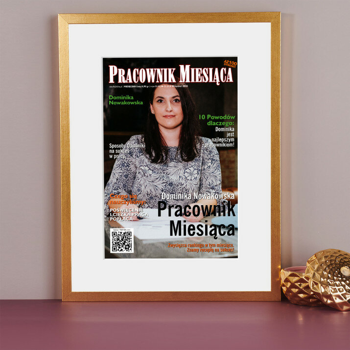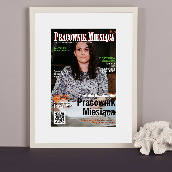 Ta okładka to nie tylko wyróżnienie dla pracownika miesiąca, ale także wyjątkowa dekoracja biura. Wykonanie i jakość są na najwyższym poziomie!