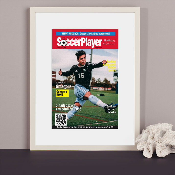 Ramka z okładką 'Soccer Player' to idealny dodatek do pokoju każdego miłośnika futbolu. Wyjątkowy design i czarna oprawa czynią ją niezapomnianą.