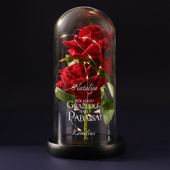 Wieczna róża pod szklaną kopułą to wyjątkowy prezent, który można podarować na wiele okazji. To piękny i trwały upominek, który stanie się doskonałą pamiątką na lata! Główne cechy tego produktu to jego wytrzymała, transparentna kopuła, która chroni delikatną różę i nadaje mu elegancki wygląd. Estetyczna podstawka zapewnia stabilność i trwałość całej kompozycji.Dodatkowo światełka LED umieszczone wewnątrz róży tworzą romantyczną atmosferę. Na powierzchni szklanej kopuły możesz dodać wygrawerowane inicjały, imię lub krótką wiadomość, aby uczynić ten prezent jeszcze bardziej wyjątkowym. Wieczna róża jest dostarczana w prezentowym pudełku.