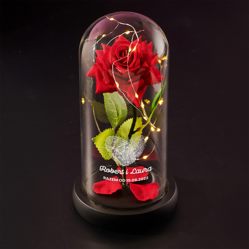 Ta wieczna róża w szkle to prawdziwie romantyczny prezent. Delikatne odciski palców nadają jej osobisty charakter.