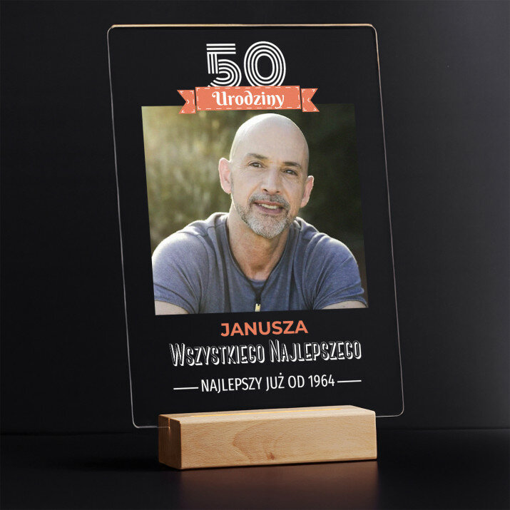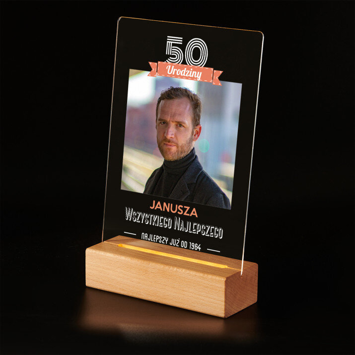 Wyjątkowa pamiątka, która zachwyci obdarowaną osobę! Wydruk na bezbarwnym szkle akrylowym (pleksiglas) o grubości 2 mm to upominek na lata. Materiał wyróżnia się doskonałą jakością powierzchni i sztywnością, jest odporny na uszkodzenia oraz warunki atmosferyczne.Podstawka LED wykonana jest z drewna bukowego. Temperatura barwowa 3000K zapewnia ciepłe, nastrojowe światło, dzięki któremu personalizowana pamiątka będzie wyglądać niczym najpiękniejszy skarb. Gwarantujemy, że będzie to świetna niespodzianka dla Twoich bliskich!