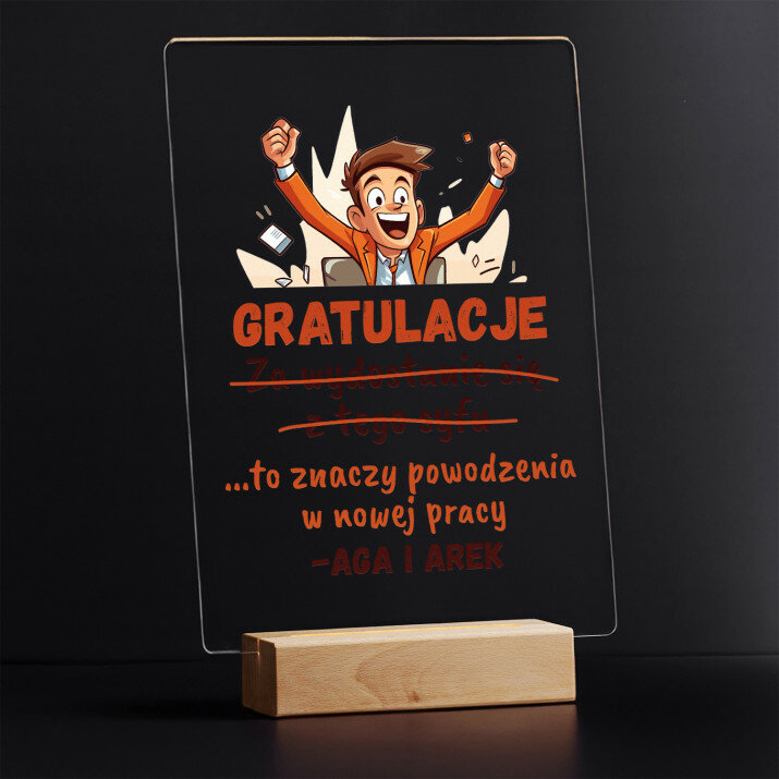 Wydruk na szkle akrylowym A4 z podstawką drewnianą LED