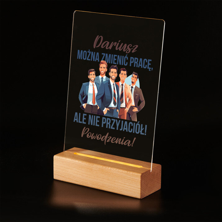 Wydruk na szkle akrylowym z podstawką drewnianą LED.