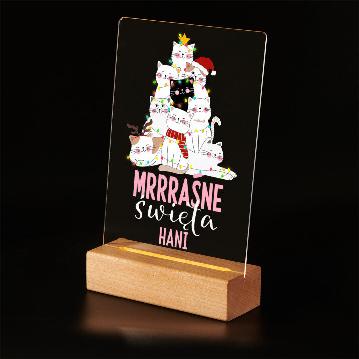 Wydruk na szkle akrylowym z podstawką drewnianą LED.