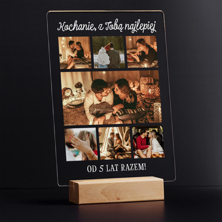 Wyjątkowa pamiątka, która zachwyci obdarowaną osobę! Wydruk na bezbarwnym szkle akrylowym (pleksiglas) o grubości 2 mm to upominek na lata. Materiał wyróżnia się doskonałą jakością powierzchni i sztywnością, jest odporny na uszkodzenia oraz warunki atmosferyczne.Podstawka LED wykonana jest z drewna bukowego. Temperatura barwowa 3000K zapewnia ciepłe, nastrojowe światło, dzięki któremu personalizowana pamiątka będzie wyglądać niczym najpiękniejszy skarb. Gwarantujemy, że będzie to świetna niespodzianka dla Twoich bliskich!