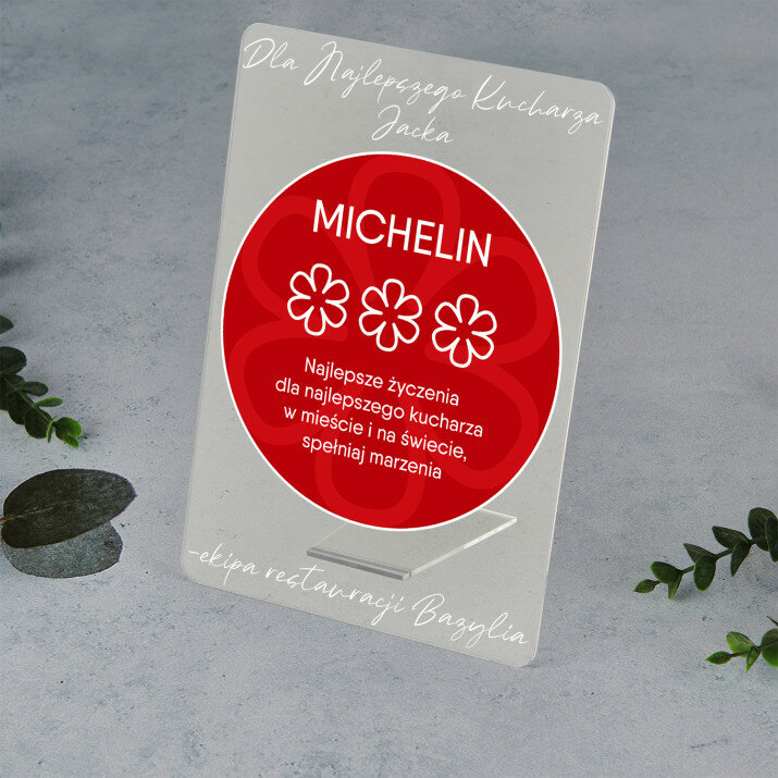 Wydruk na szkle akrylowym z podstawką z akrylu.