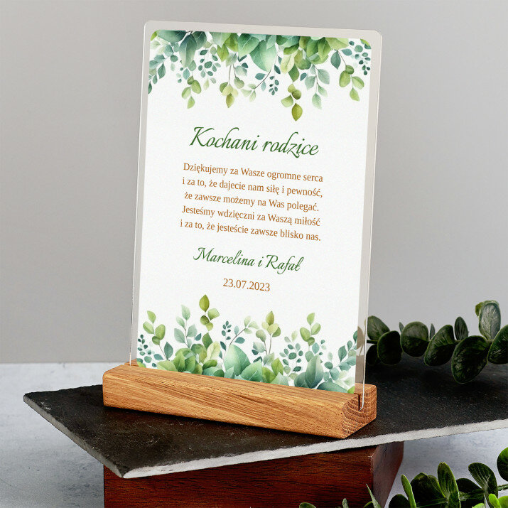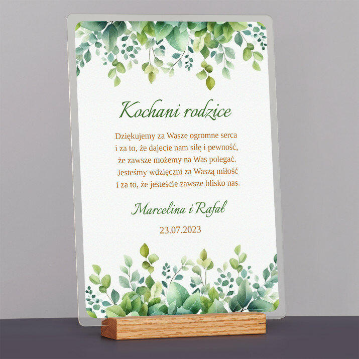 Wydruk na szkle akrylowym A4 z podstawką drewnianą