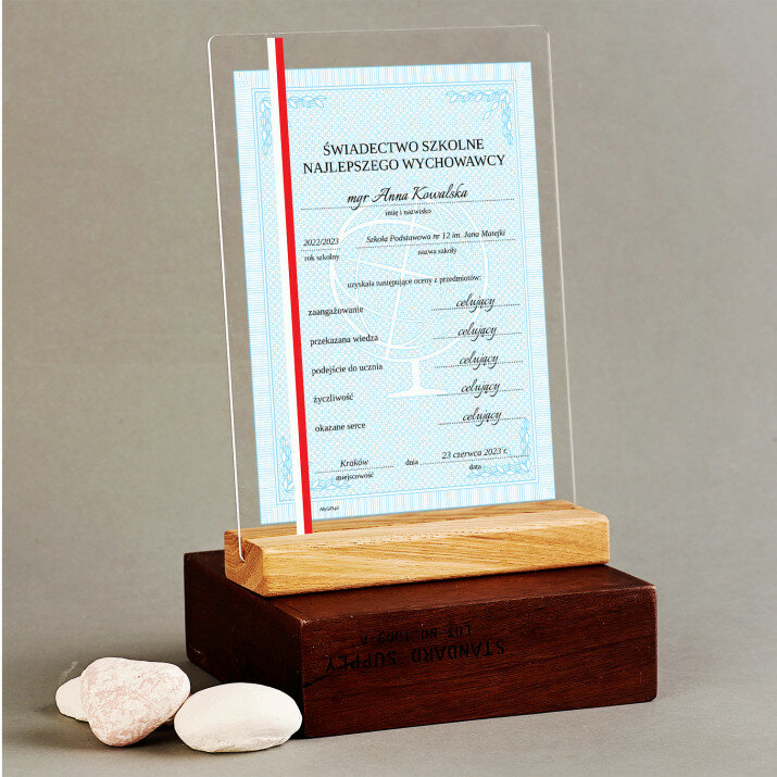 Wydruk na szkle akrylowym A4 z podstawką drewnianą