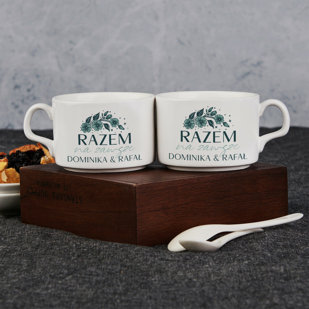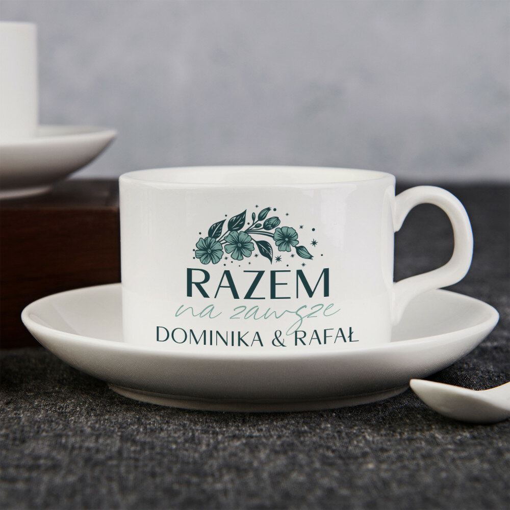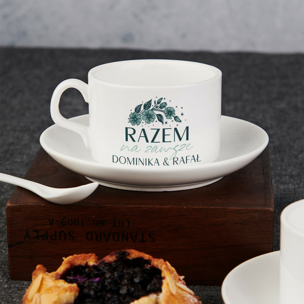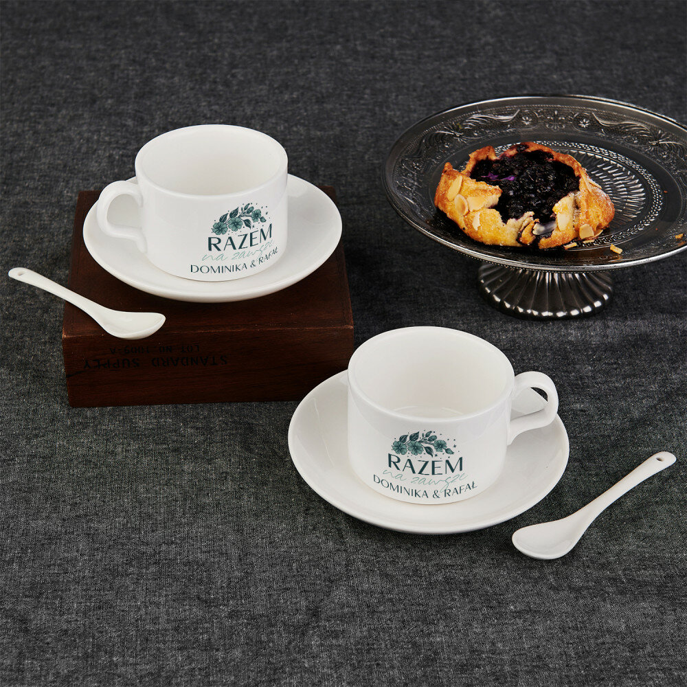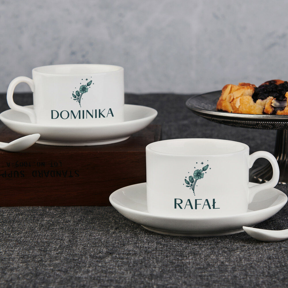 Eleganckie filiżanki ceramiczne z dwustronnym, kolorowym nadrukiem. W zestawie do każdej filiżanki dołączony jest spodek oraz łyżeczka. Klasyczny design pasuje do każdego wnętrza i każdej okazji. Filiżanki świetnie nadają się do codziennego użytku, sprawdzą się również podczas bardziej uroczystych spotkań. Wzory stworzone specjalnie dla par sprawią, że z tych filiżanek herbatka we dwoje będzie smakować doskonale! Kolor produktu biały.Wymiary: pojemność ok. 118 ml, średnica 78 mm, wysokość 53 mm.