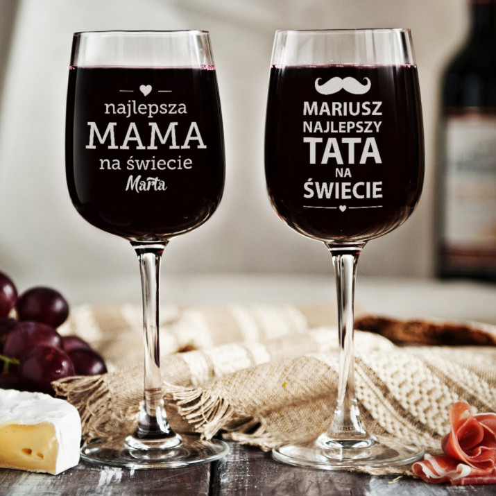 Mama i Tata - Zestaw grawerowanych kieliszków do wina